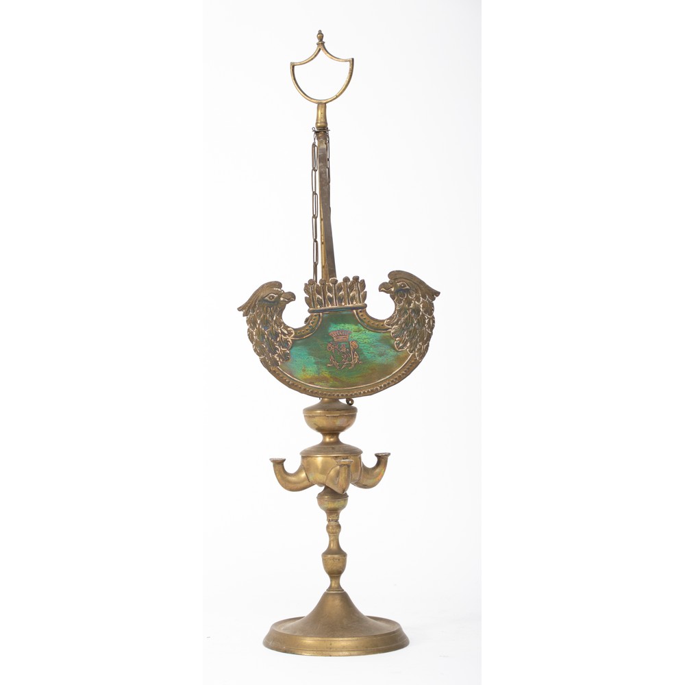 LUMIERA in ottone con ventole e stemma nobiliare al centro.