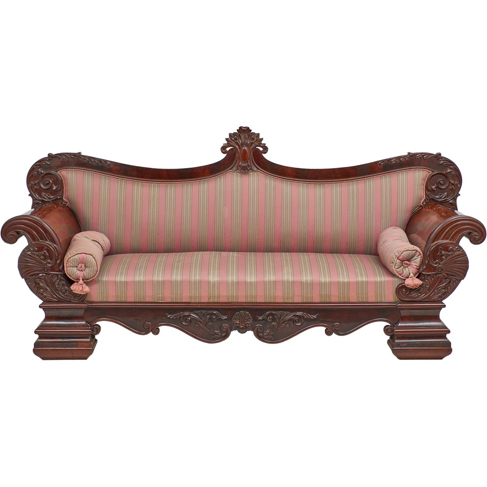 DIVANO Luigi Filippo in legno di mogano e piuma di mogano.