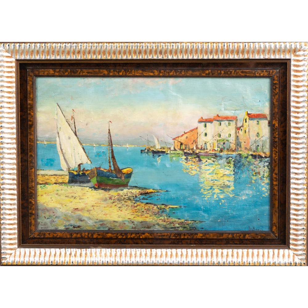 PITTORE DEL XIX/XX SECOLO, Porticciolo, Olio su tela