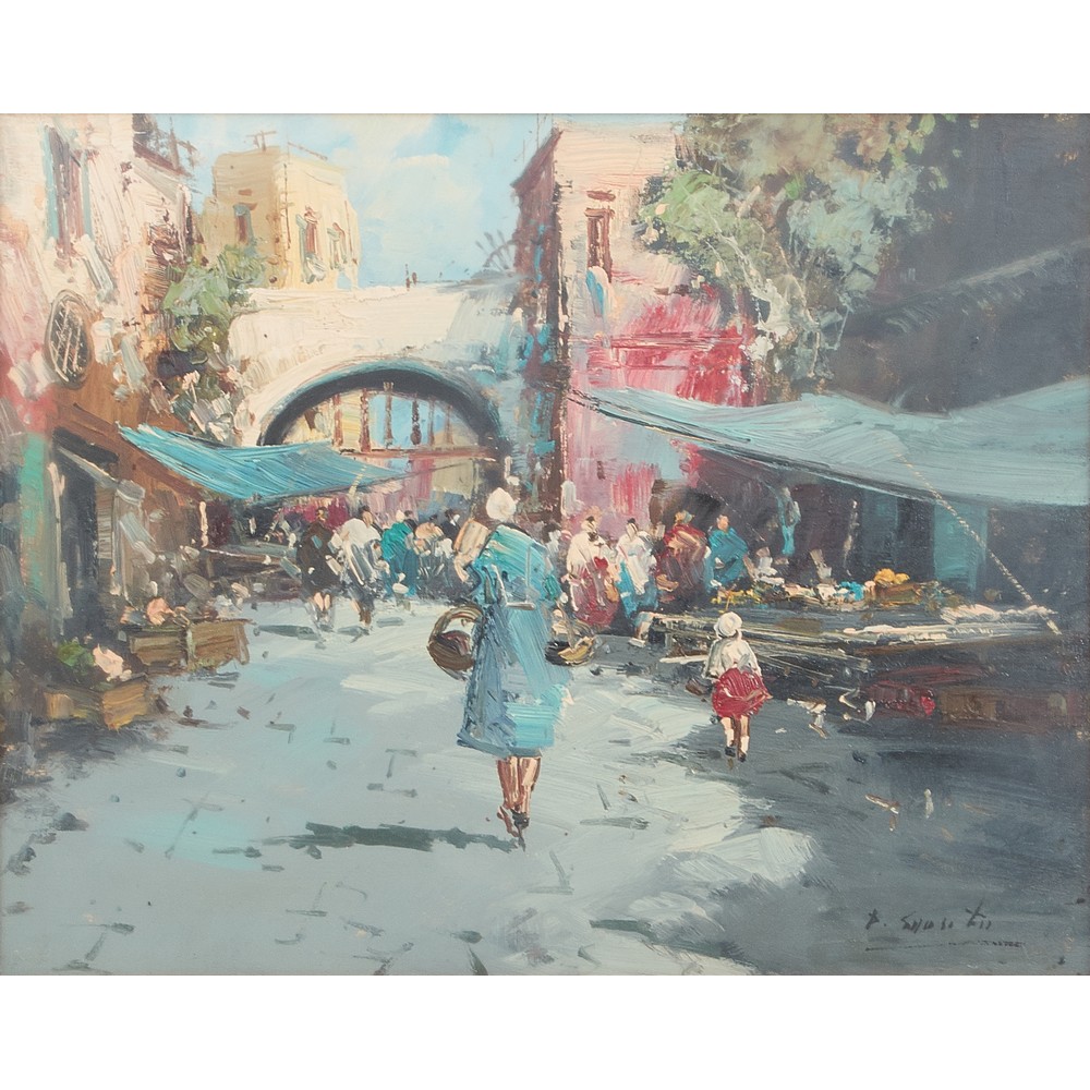 PITTORE DEL XX SECOLO. Mercato cittadino, Olio su tela