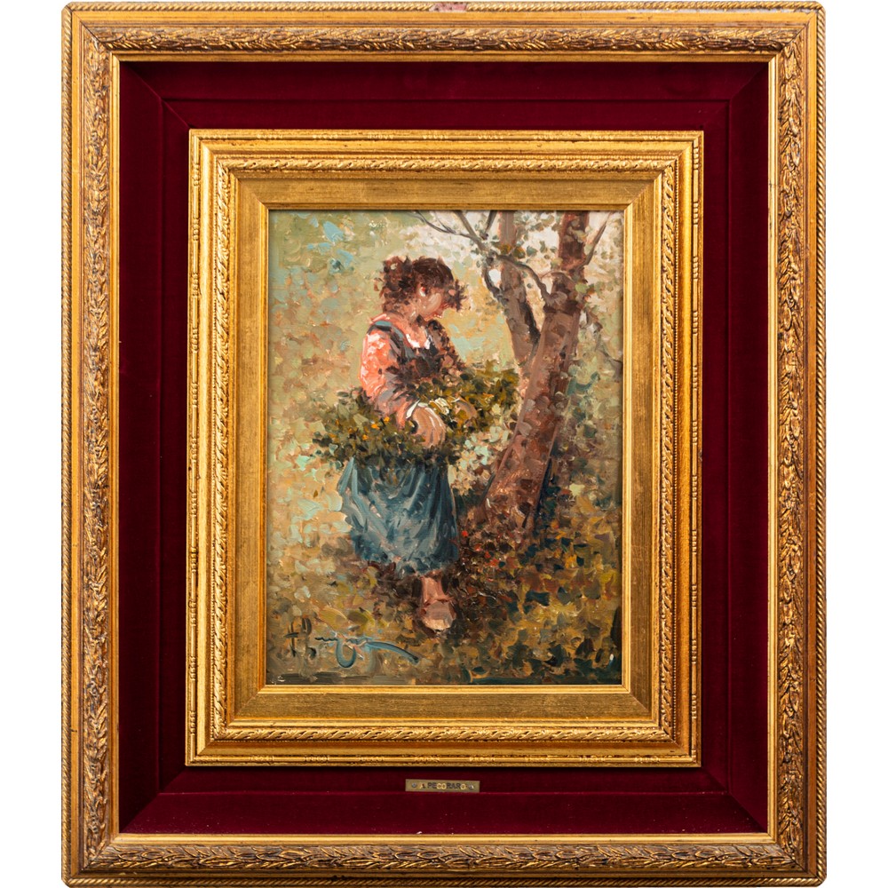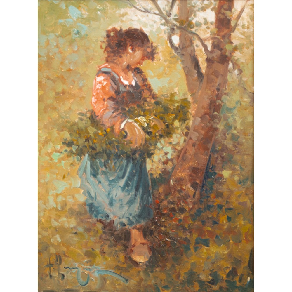 ANTONINO PECORARO, Ragazza con cesta, Olio su tela