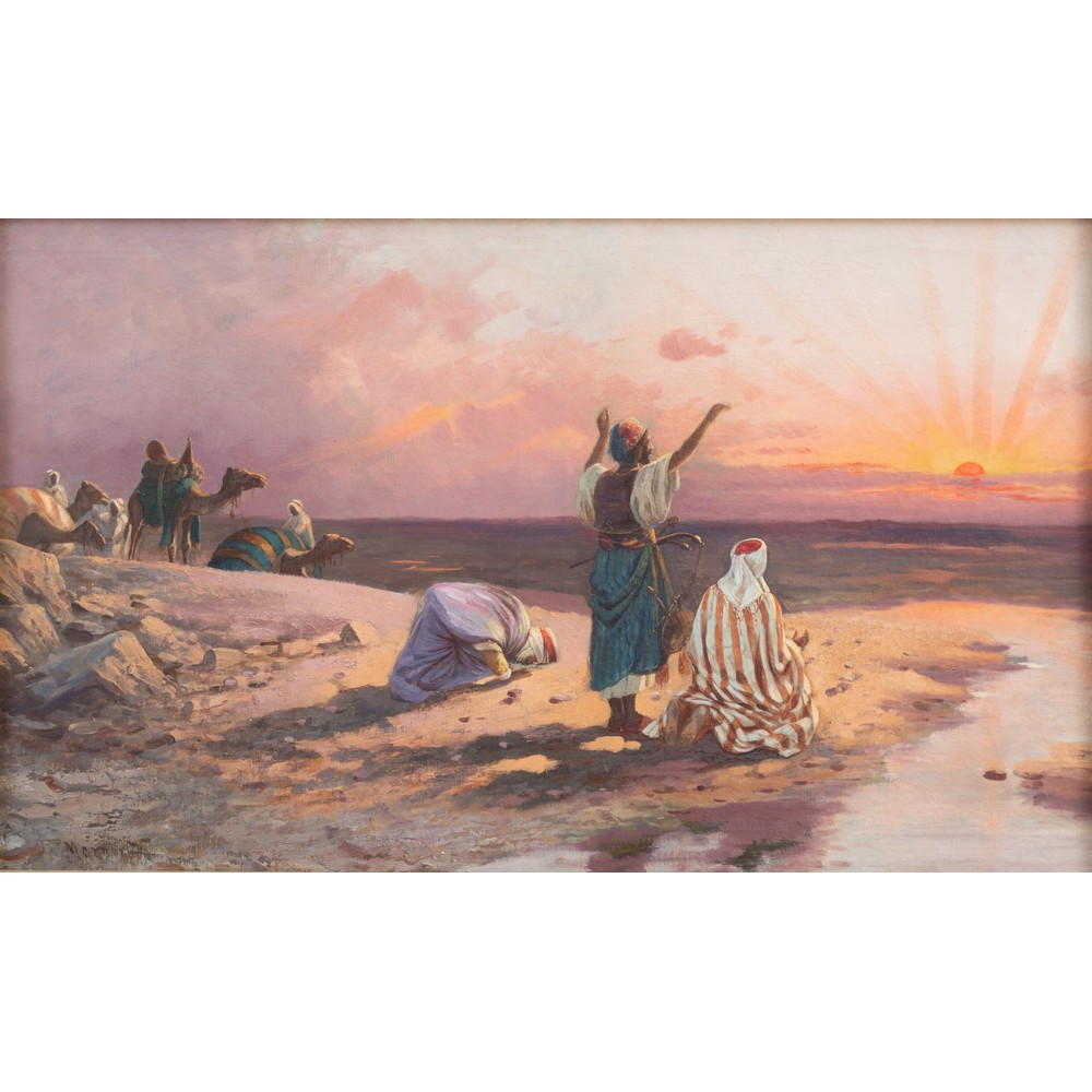 PITTORE ORIENTALE FINE '800, Olio su tela, Paesaggio Orientale
