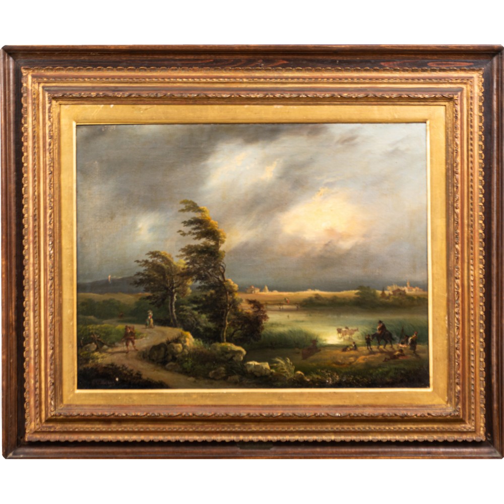 HENDRIK WILLEM MESDAG Paesaggio con personaggi ed armenti