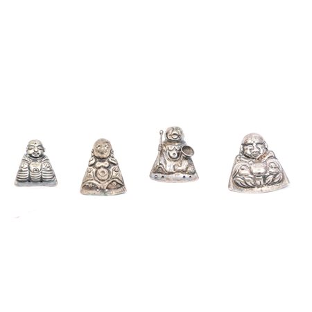 Quattro cucchiaini da oppio lavorati raffigurante Buddha.