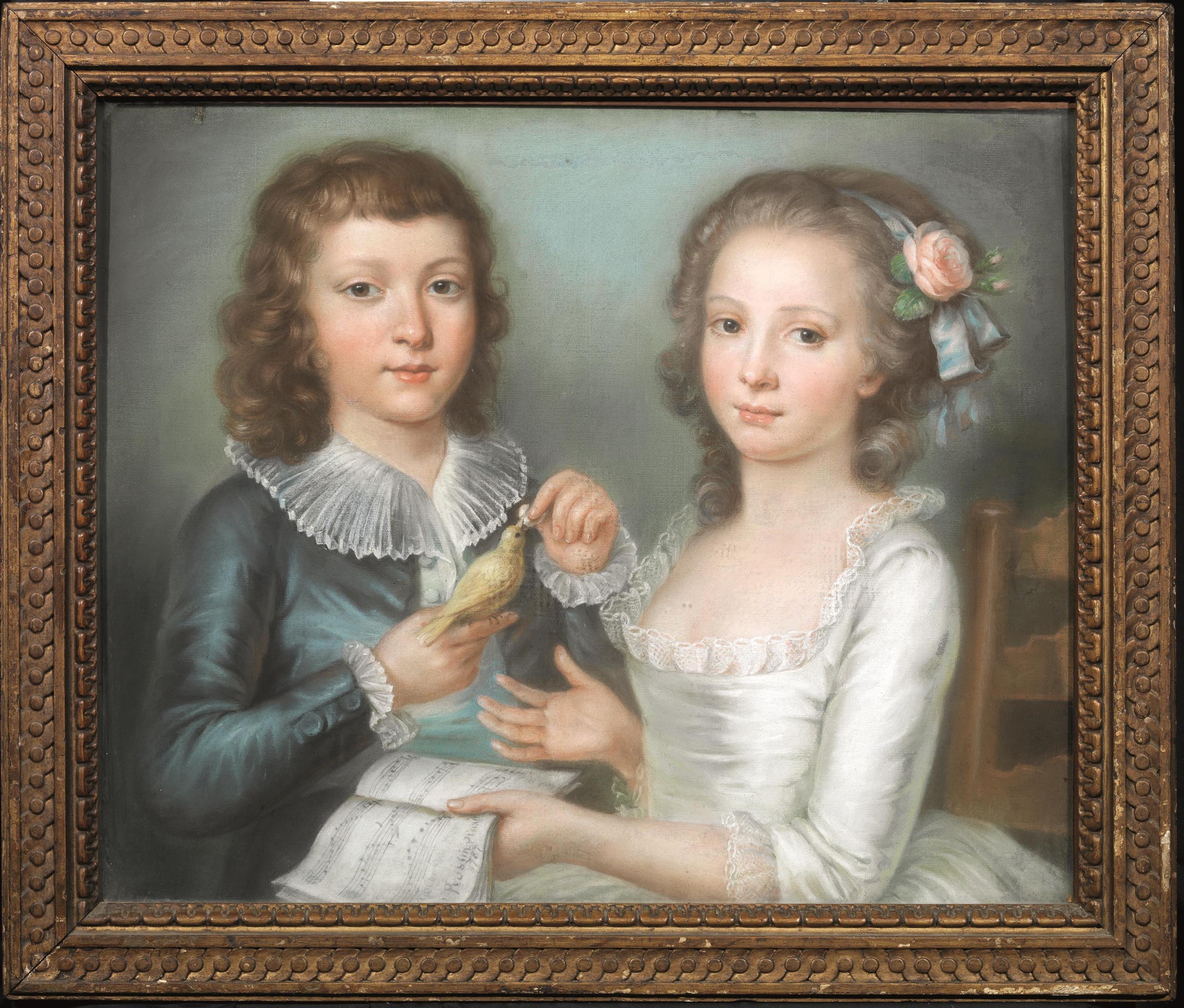 Pittore francese, fine sec. XVIIIRITRATTO DI DUE GIOVANETTIpastello su carta,...