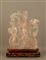 Firmato. Scultura in giada rosa su base di legno raff. ''FAMIGLIA''. Cina. Inizi XX secolo. Mis. Lung. cm. 12 Alt. cm. 14,5 ca.