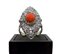 Anello spoletta in oro basso titolo 9 carati, diamanti e corallo