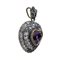 Ciondolo con ametista a forma di cuore in oro basso titolo e argento, doppio giro di diamanti gr. 9,8