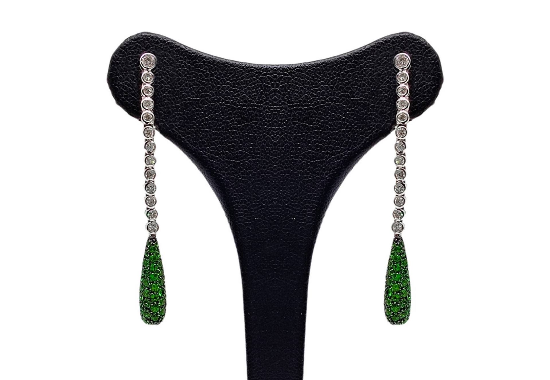 Orecchini pendenti in tsavorite e brillanti cm 5 Orecchini pendenti in tsavorite e brillanti 0,5 carati