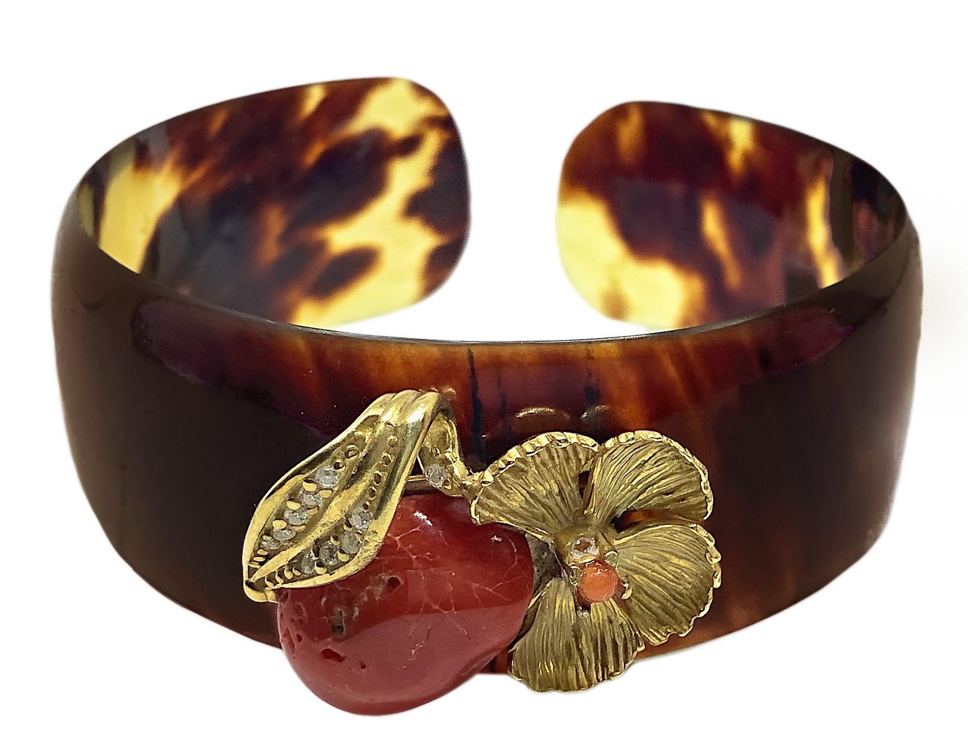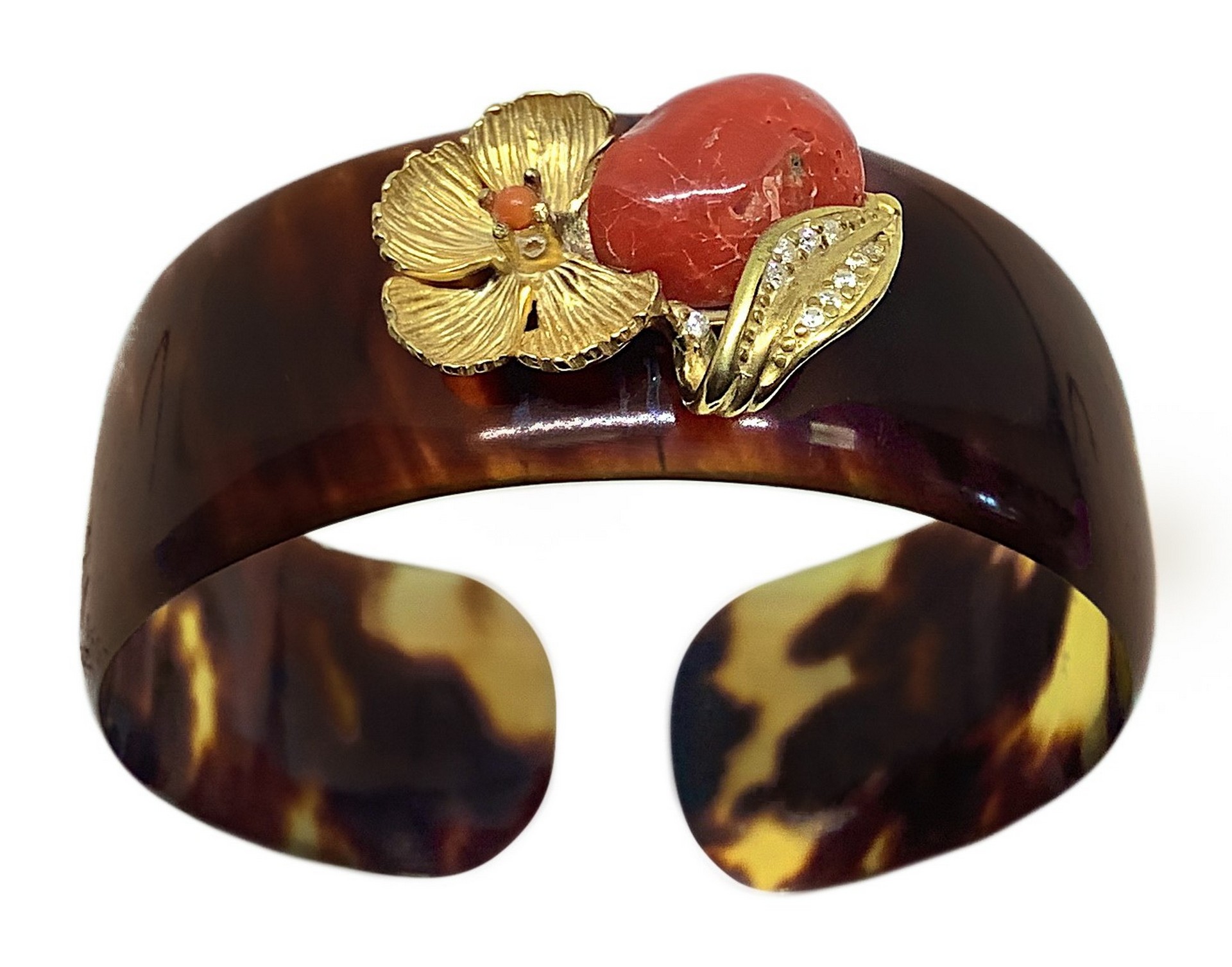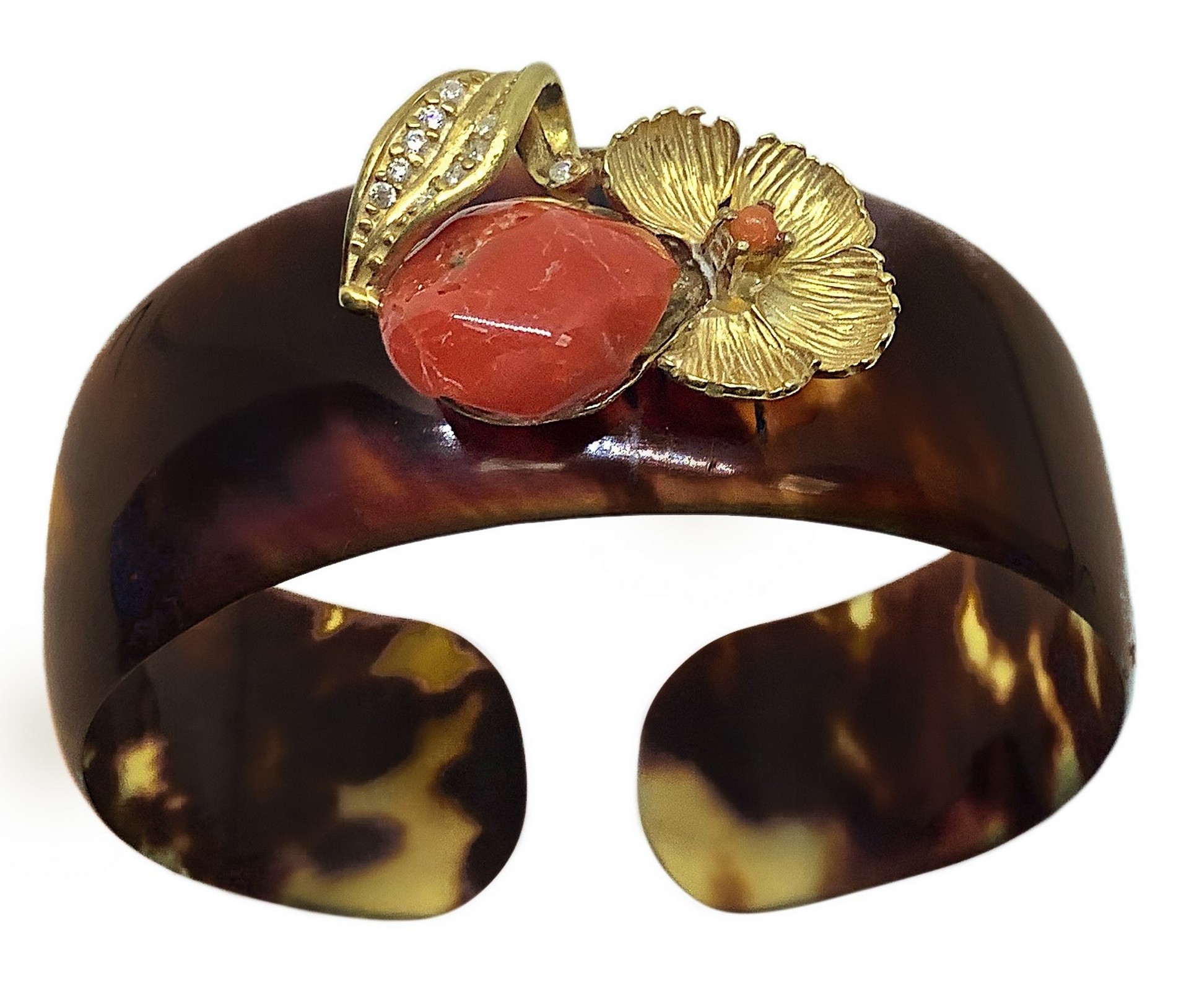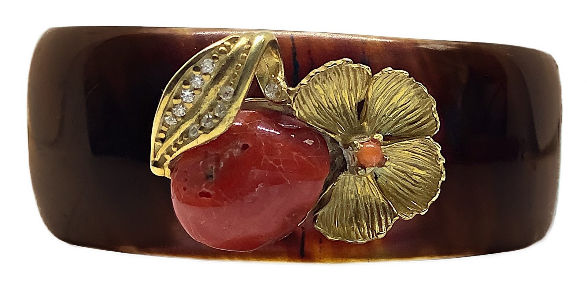 Bracciale tartaruga, fiore in argento e corallo
