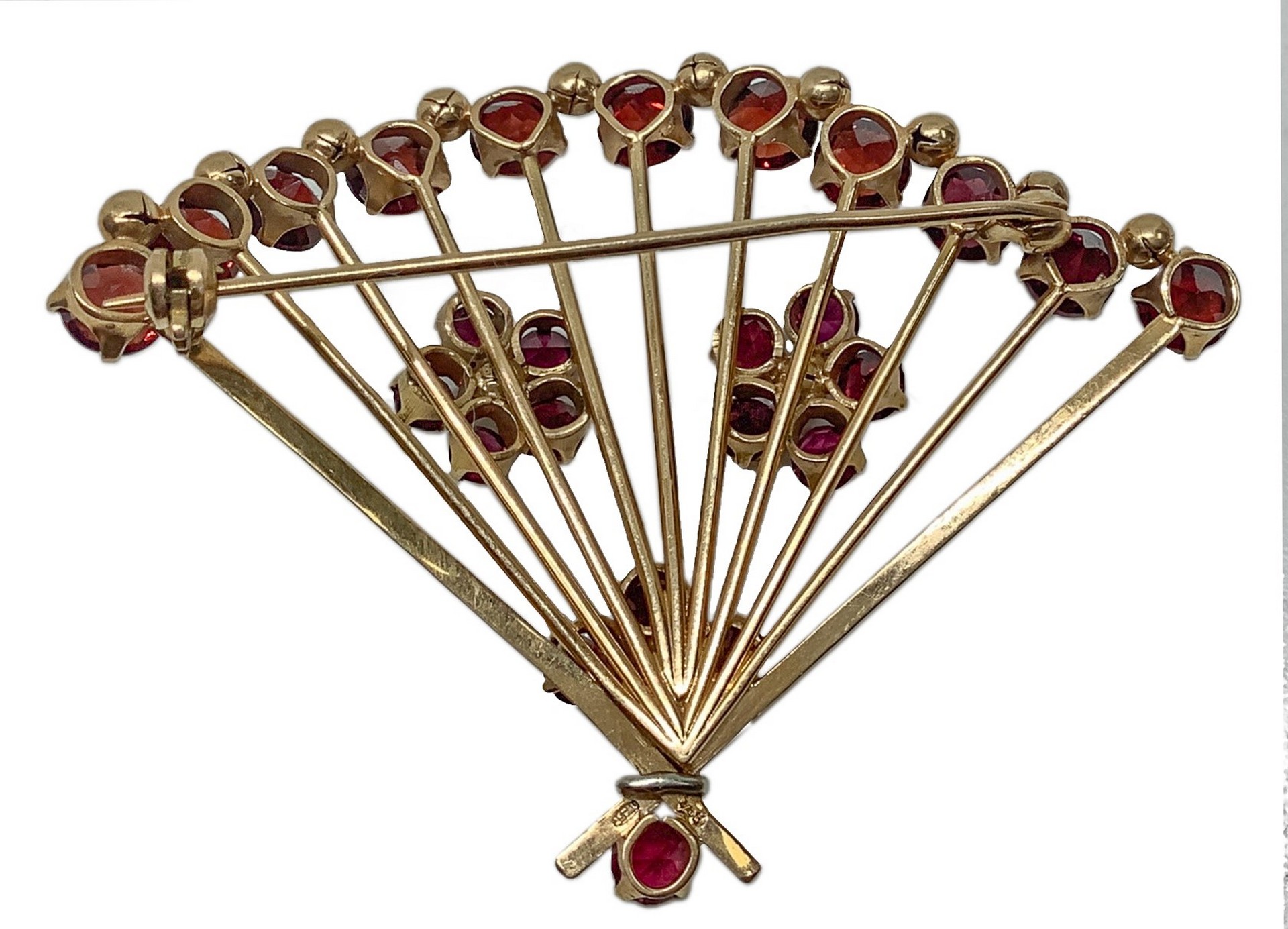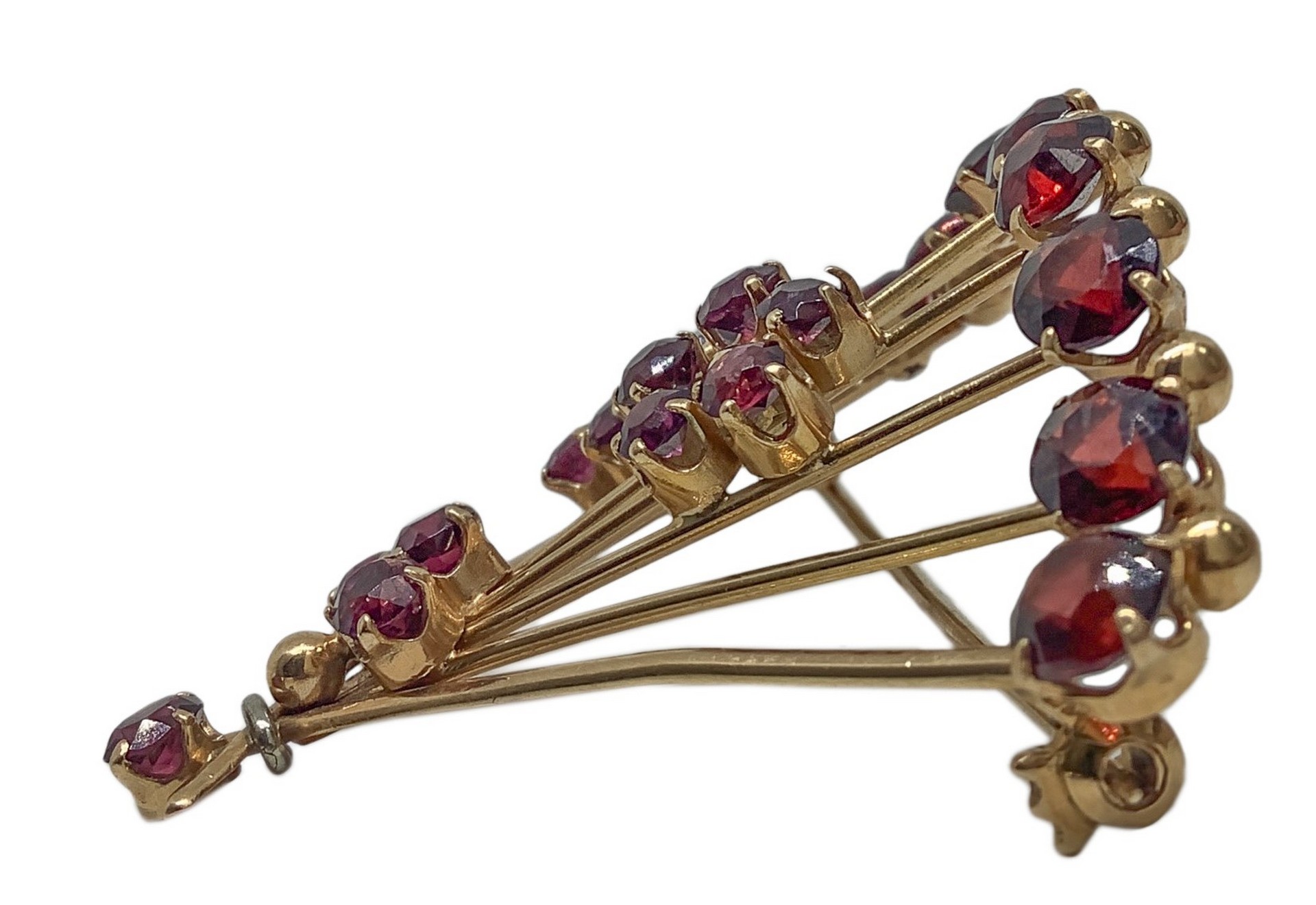 Lotto 83 | Spilla a ventaglio in oro 18 carati con granati, 1950s
