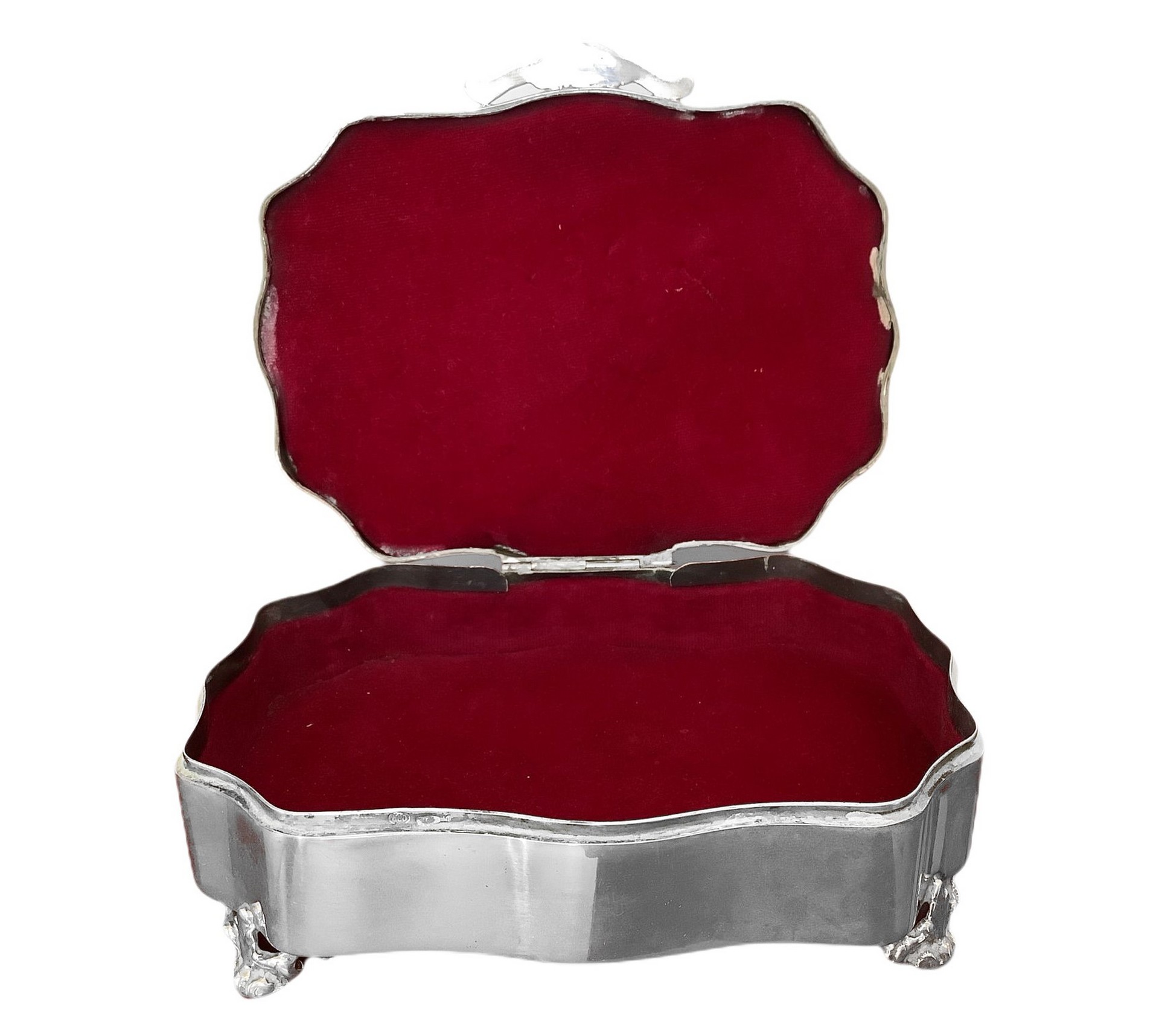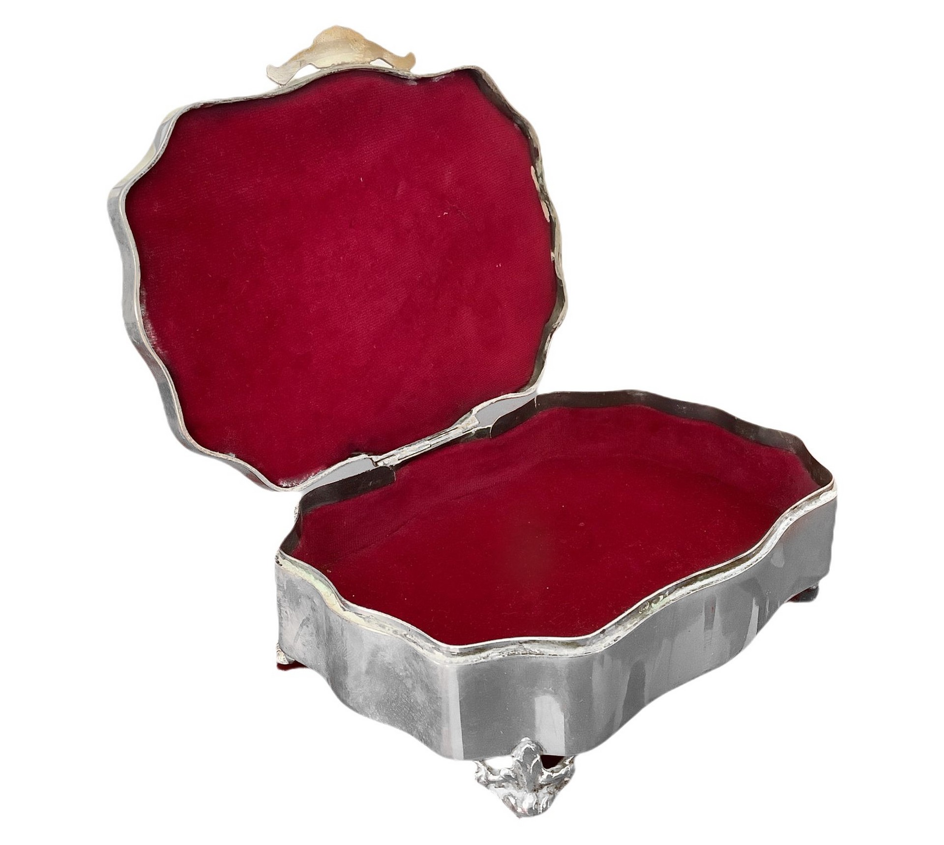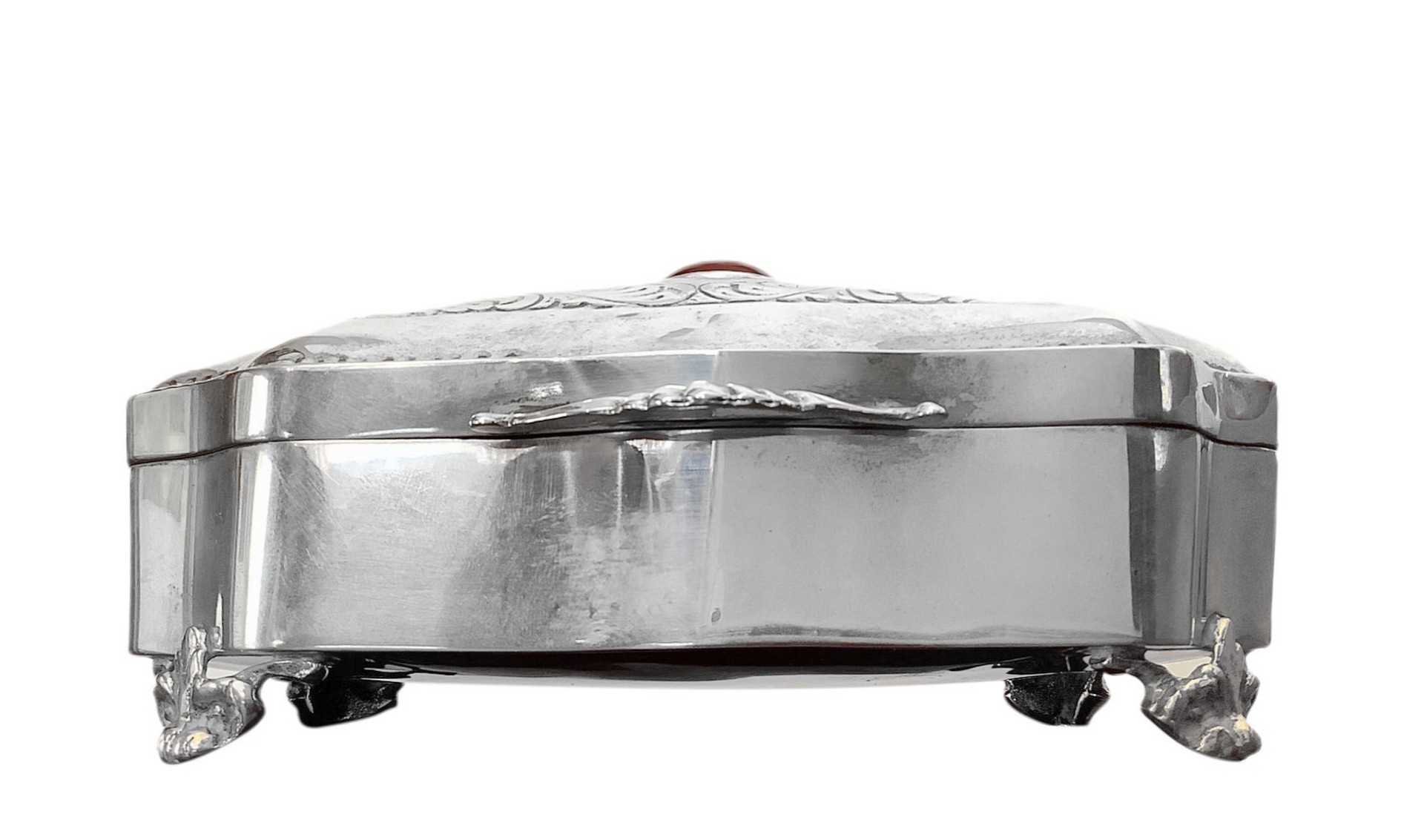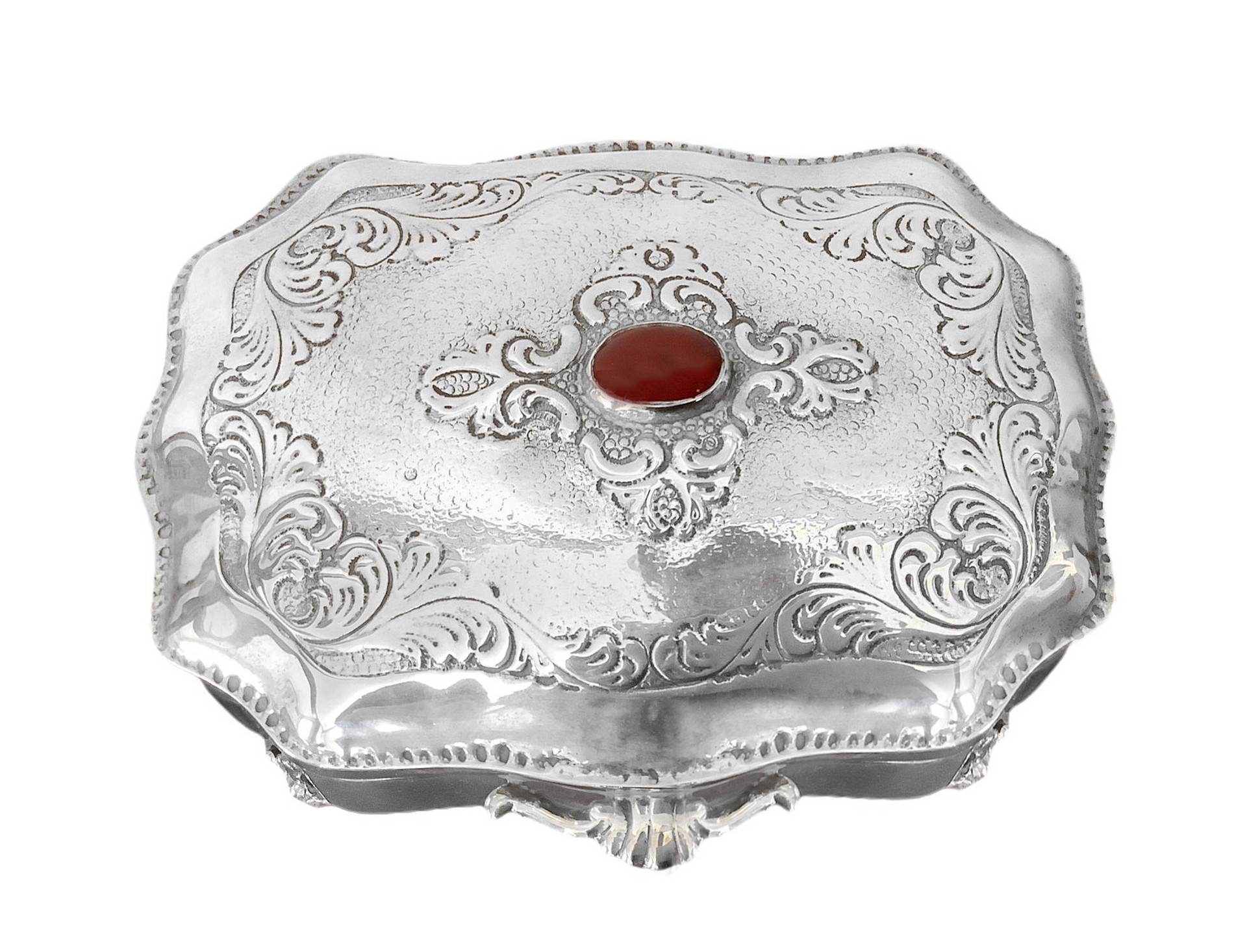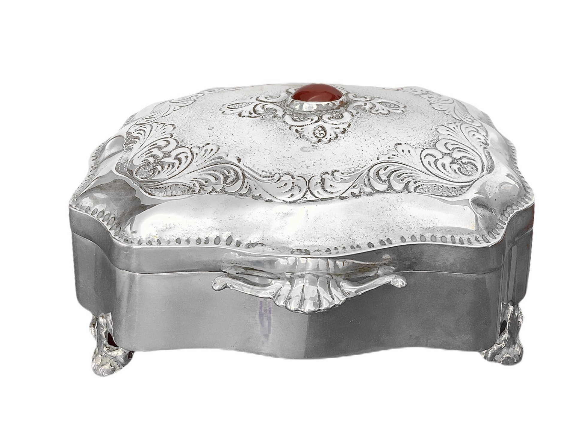 Portagioie in argento con corniola sul coperchio H cm 6x14x11