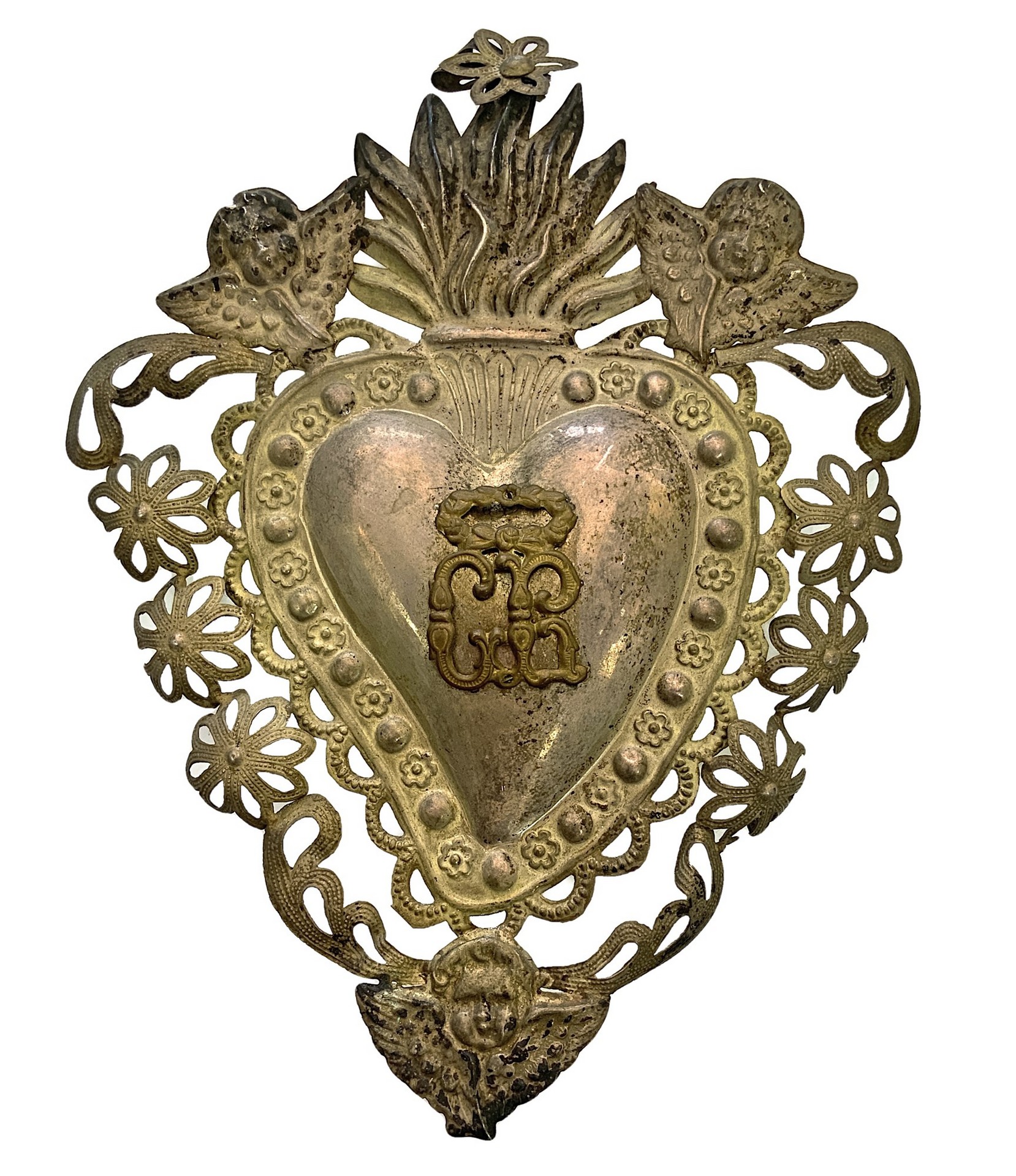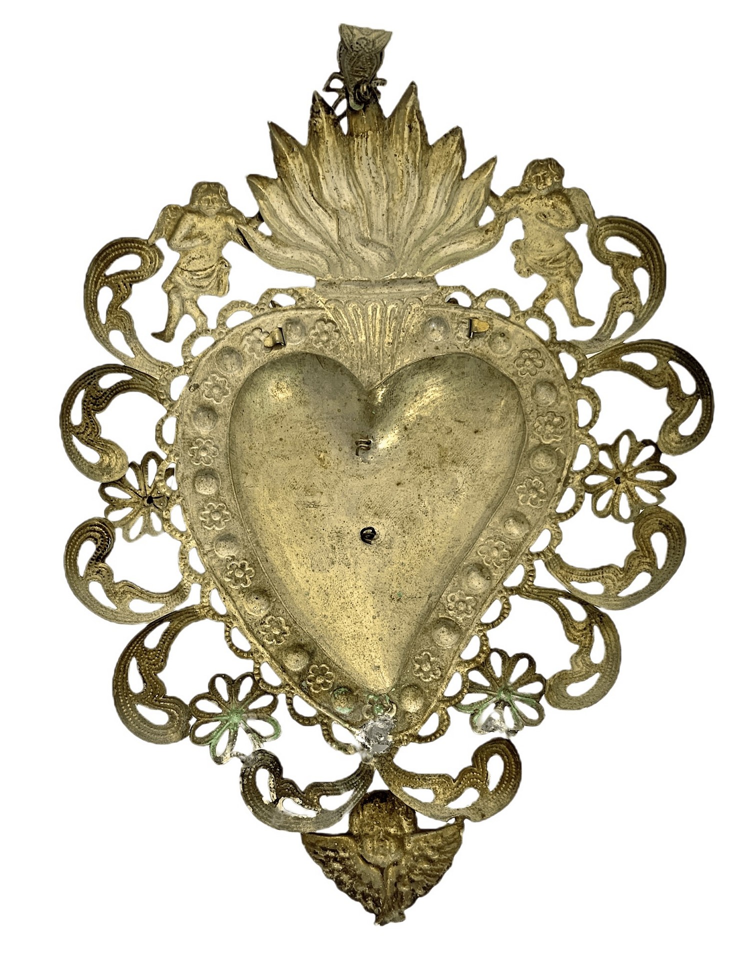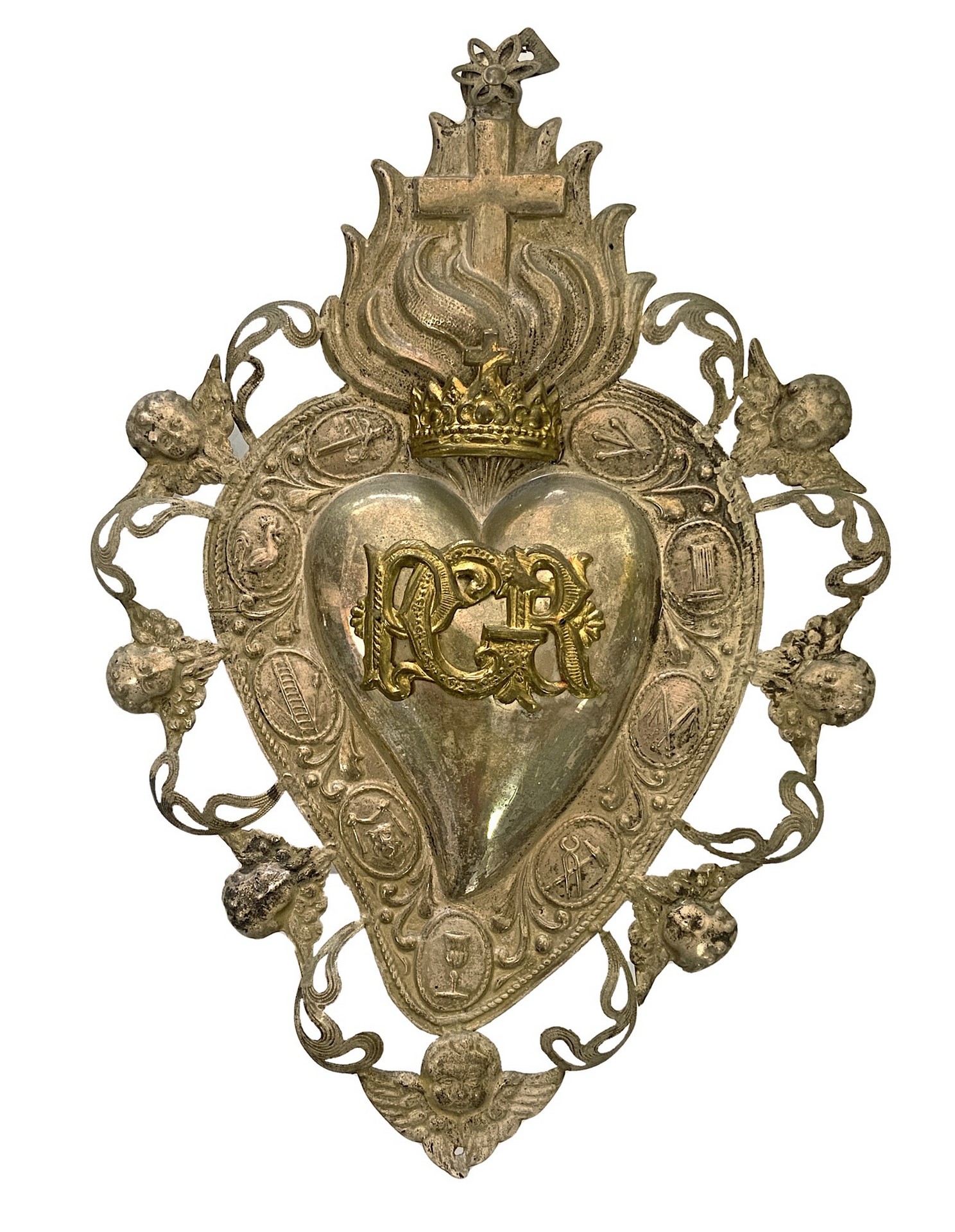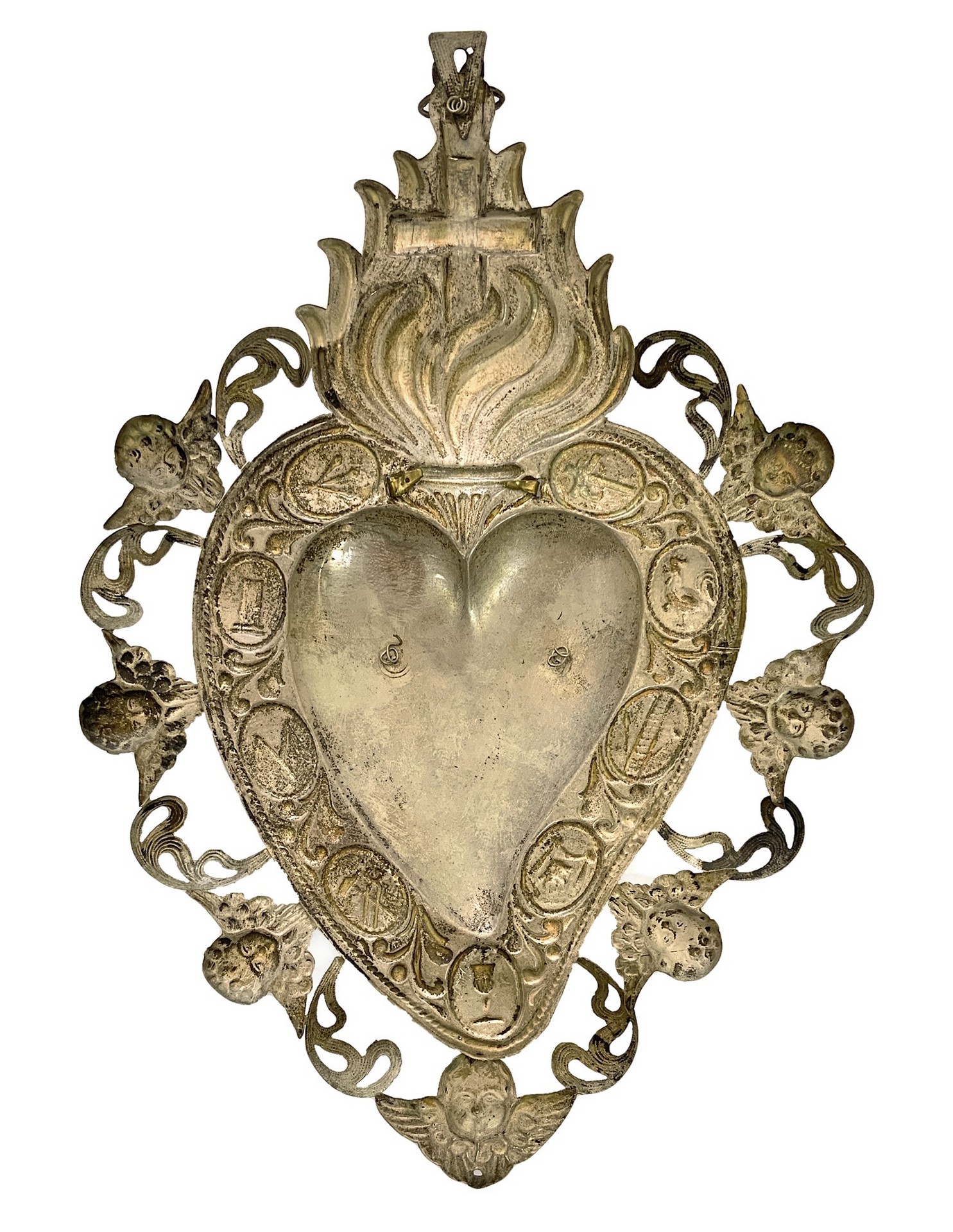 N 3 Ex voto in argento a forma di cuore con puttini e simboli della passione