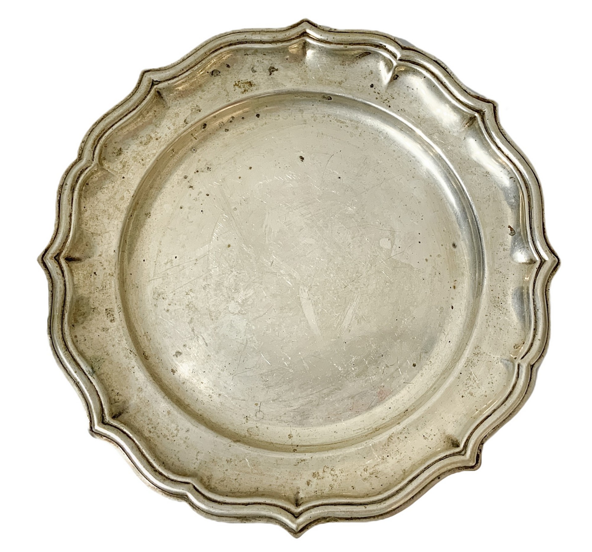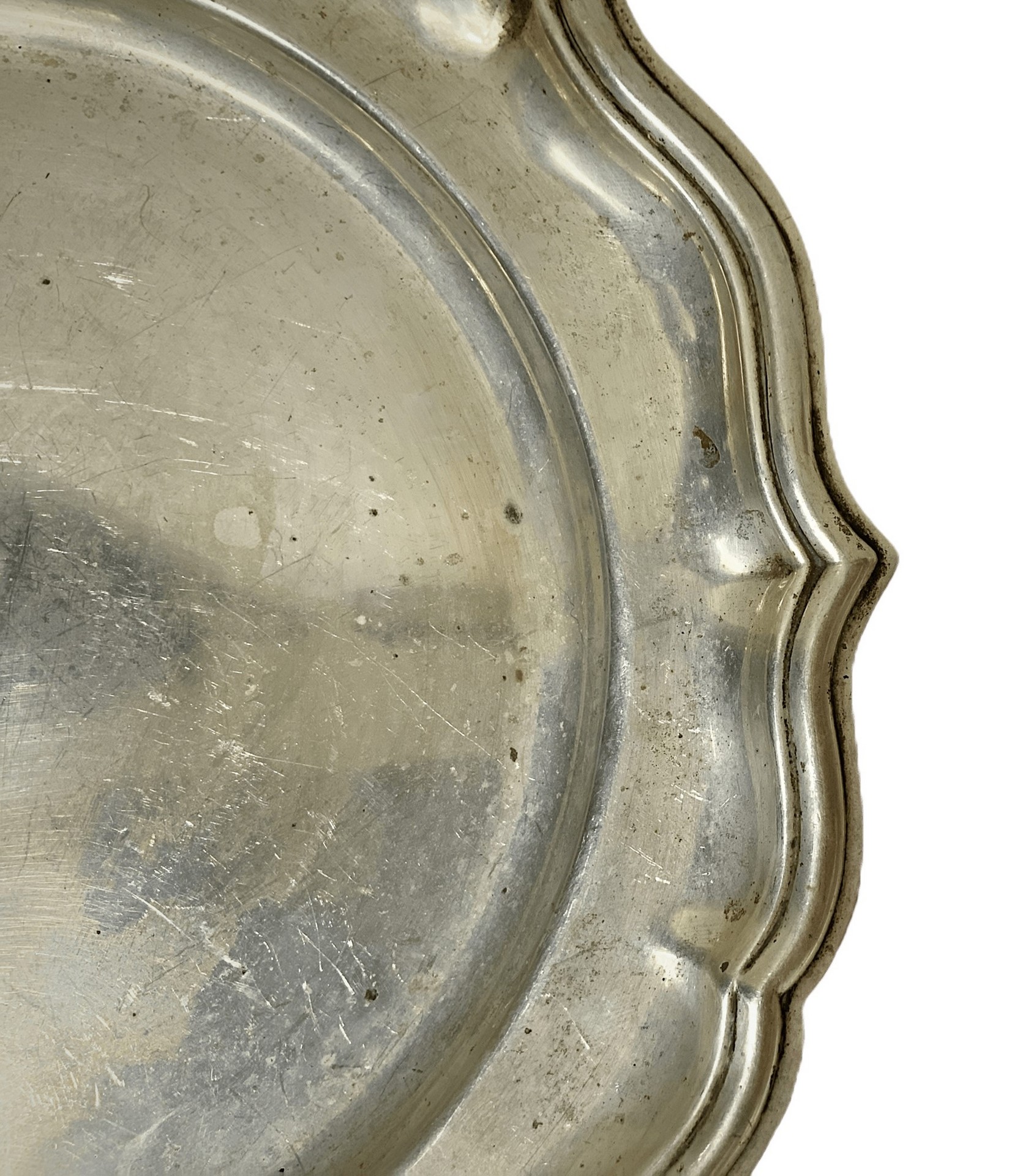 Vassoio smerlato in argento 800, nineteen° secolo Diametro 28 cm Gr 528