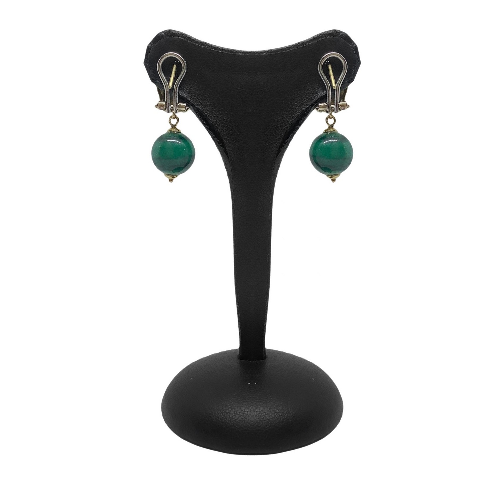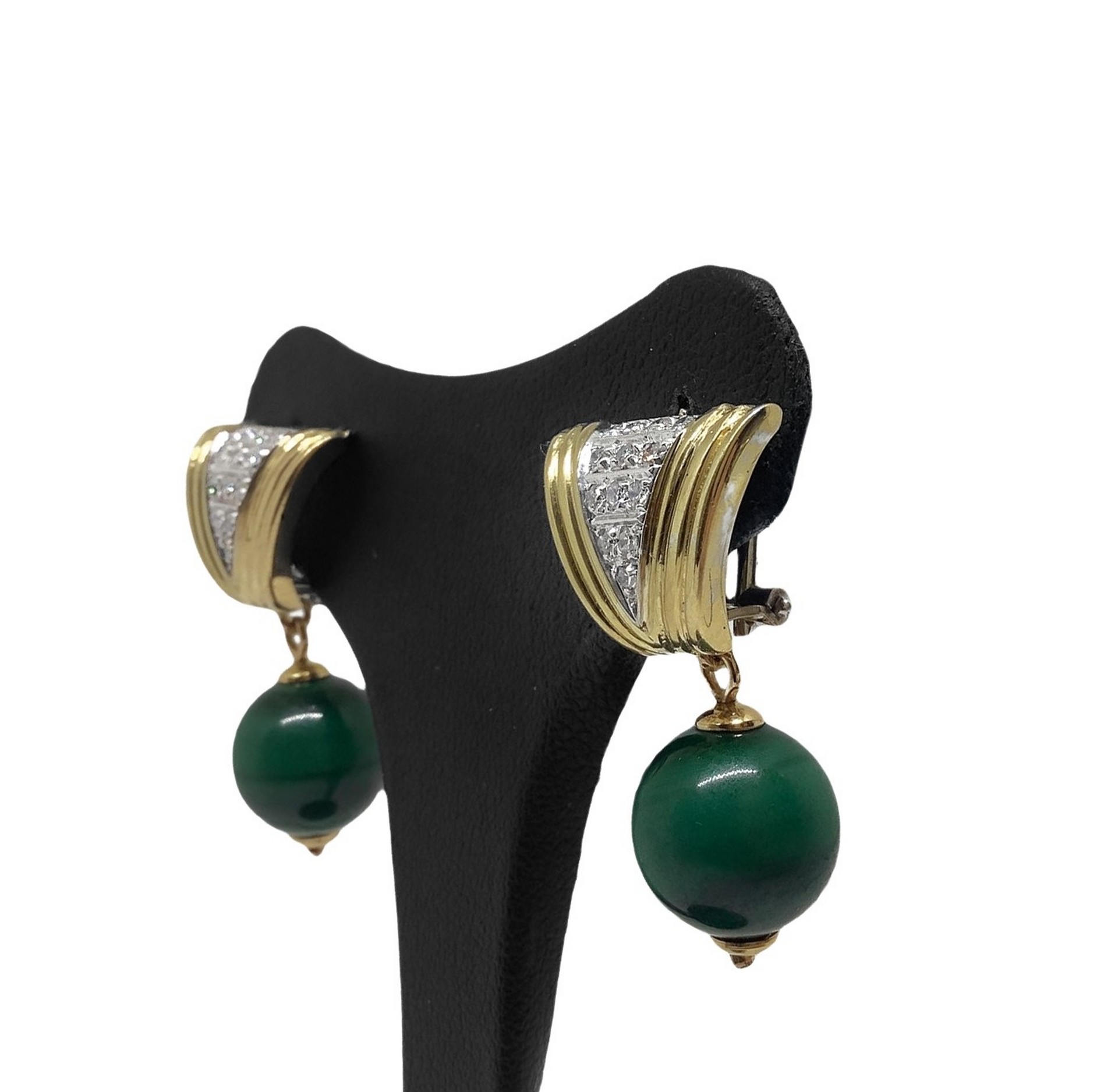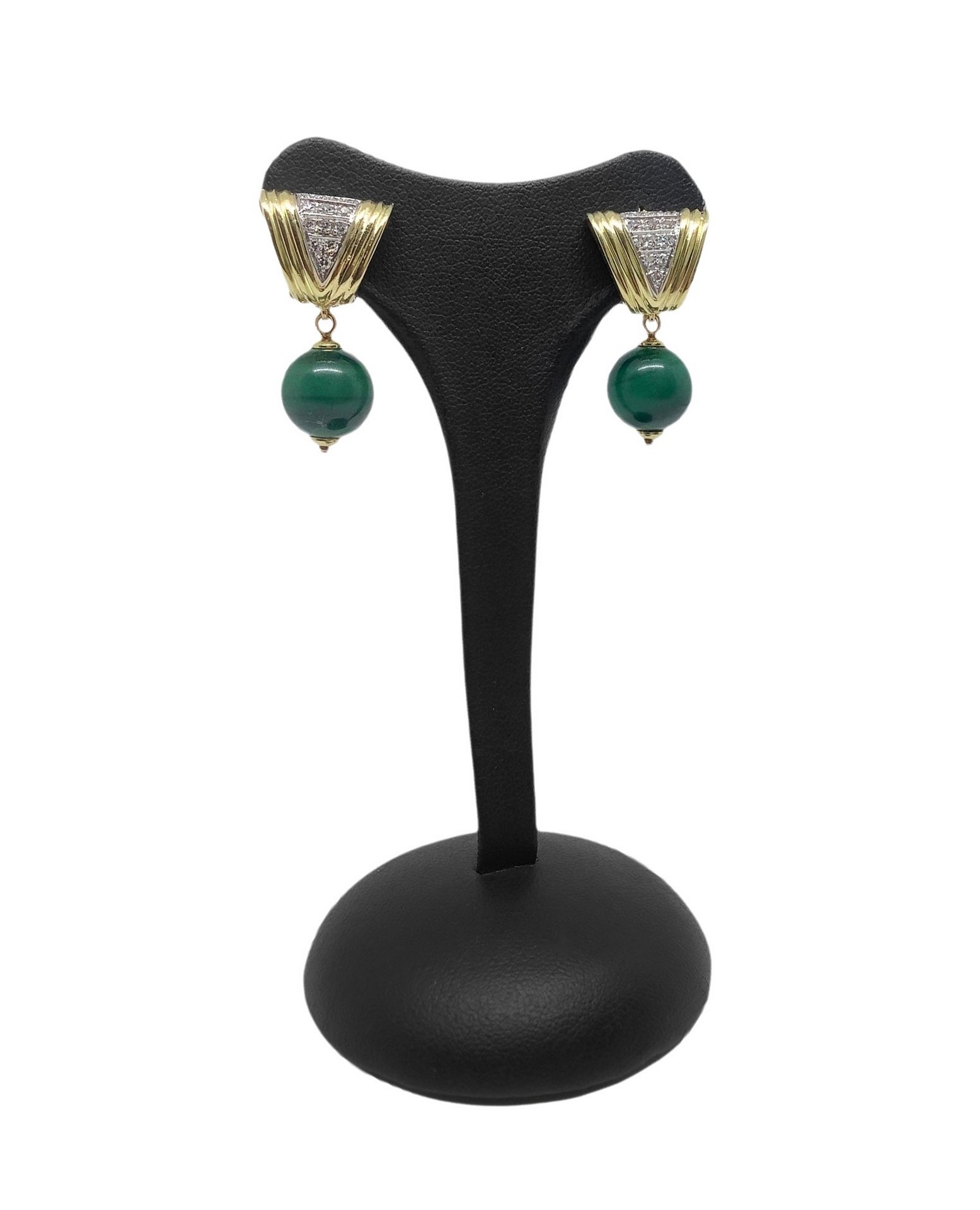 Orecchini in oro bianco e giallo Pendenti in malachite e brillantini