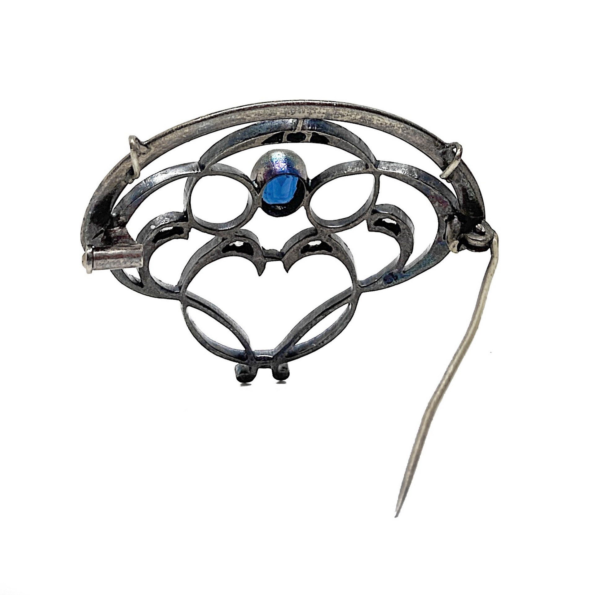 Spilla in Argento , 20° secolo Gr. 8,2 Lavorazione in argento con zaffiro centrale e rose coronè.