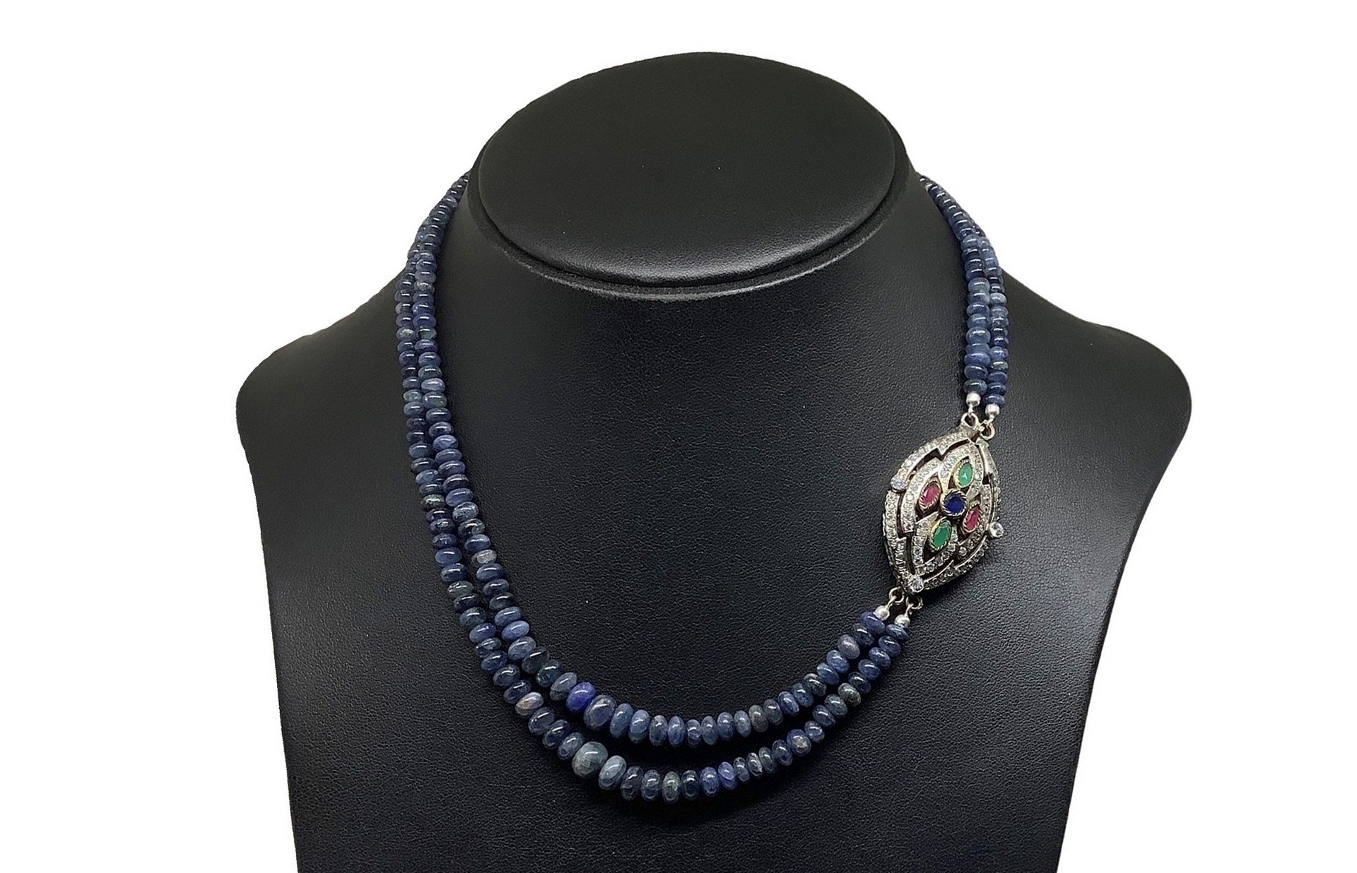 Collana in argento con zaffiri e chiusura con smeraldi e zaffiri