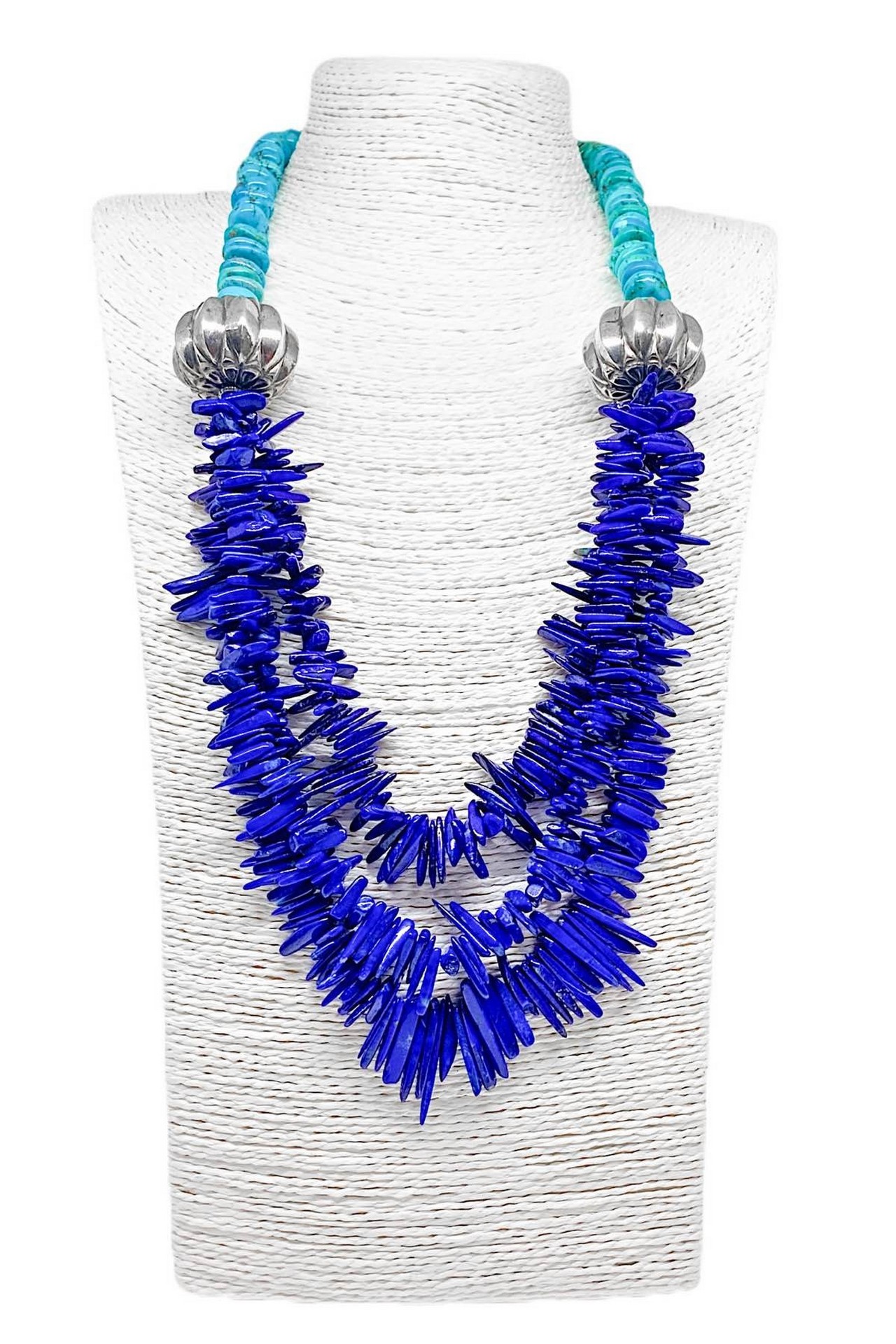 Collana con un filo di TURCHESE rondella, più tre fili di lapislazzuli,