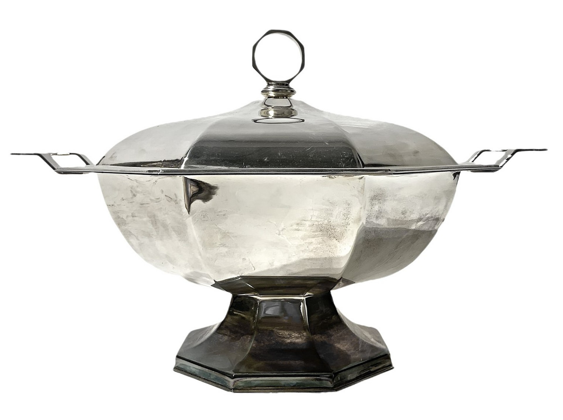 Zuppiera in sheffield, Silver plate, Petruzzi & Branca. H cm 23, diametro 42