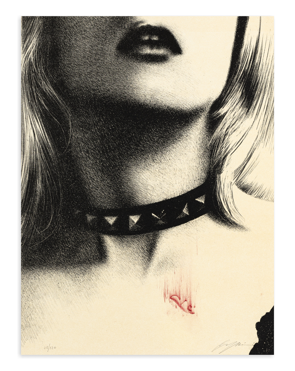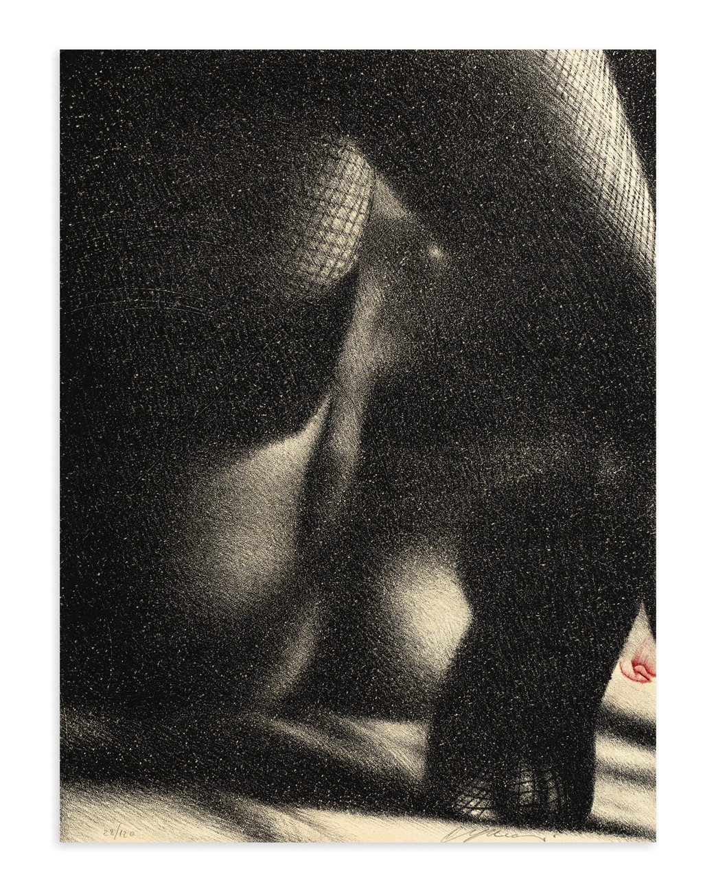 Cartella contenente testo di Giorgio Soavi e 10 litografie a 3 colori di Omar Galliani, ciascuna recante firma e numerazione (Esemplari 28/120) a matita al fronte