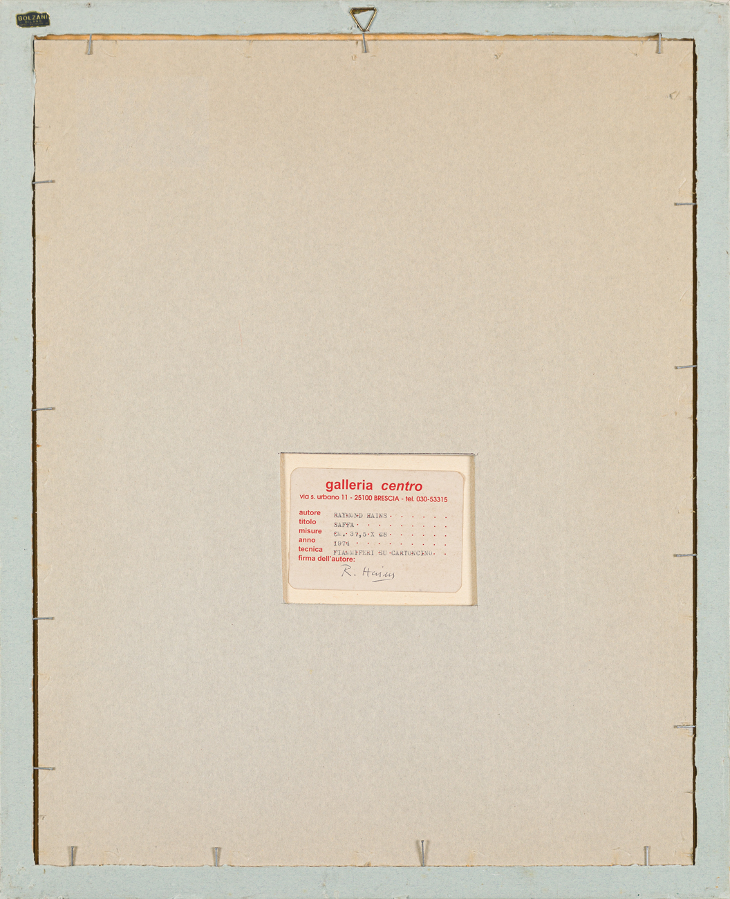 Etichetta della Galleria Centro (BS) al retro con firma dell'Artista