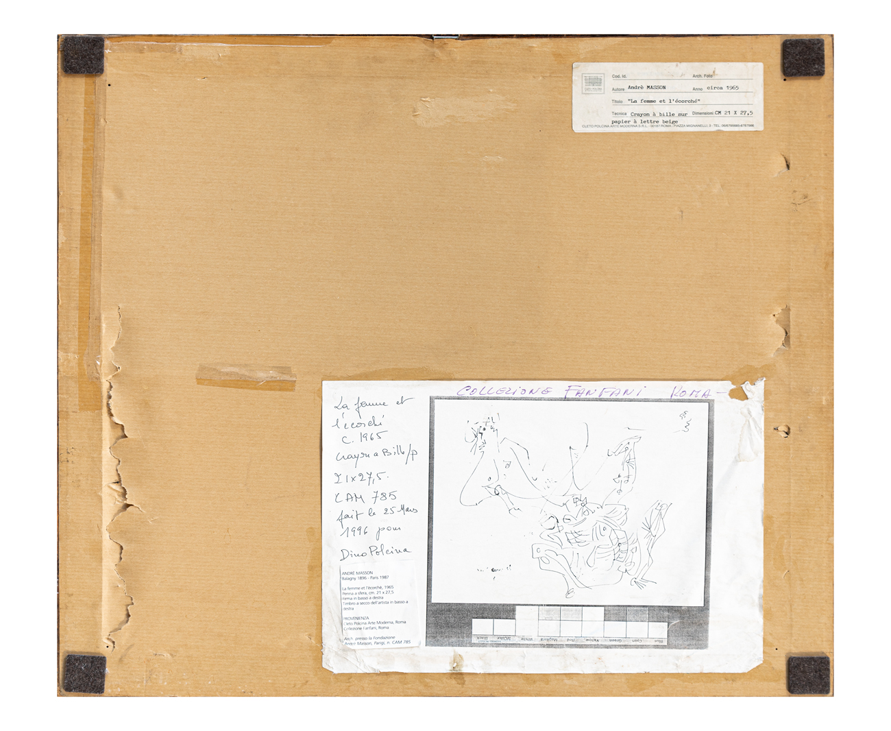 Opera registrata presso il Comité André Masson (Parigi) con riferimento C.A.M 785, come da certificato allegato rilasciato in data 25/05/1996