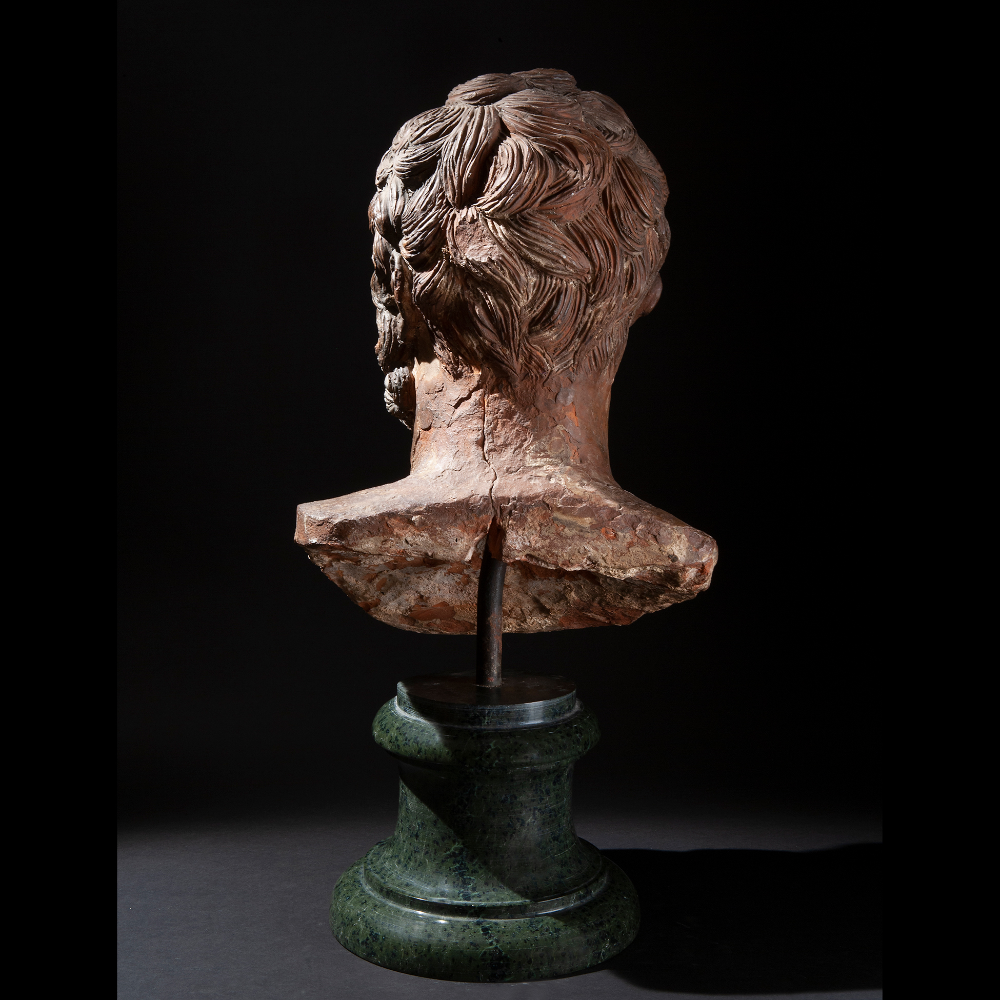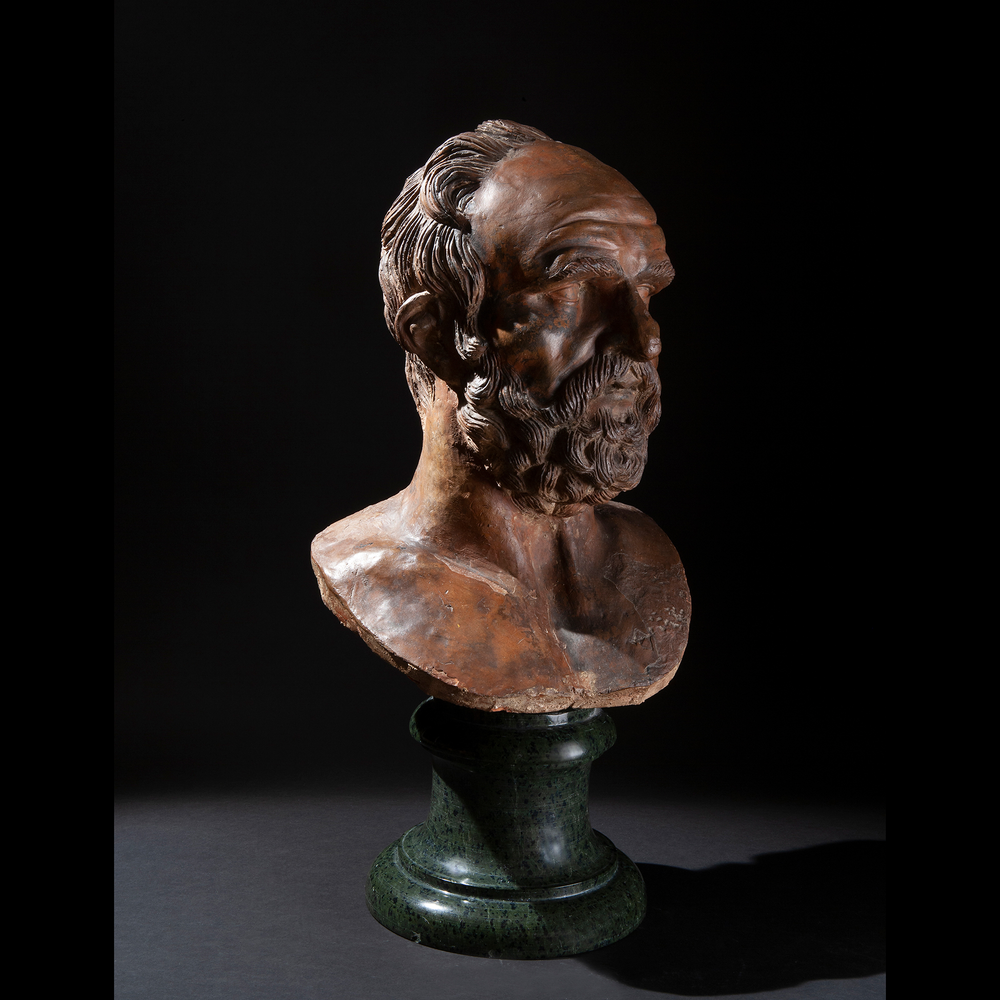 Scultura raffigurante Filosofo, Italia XVIII secolo Scultura manufatta in terracotta. Dimensioni 42x32 cm.