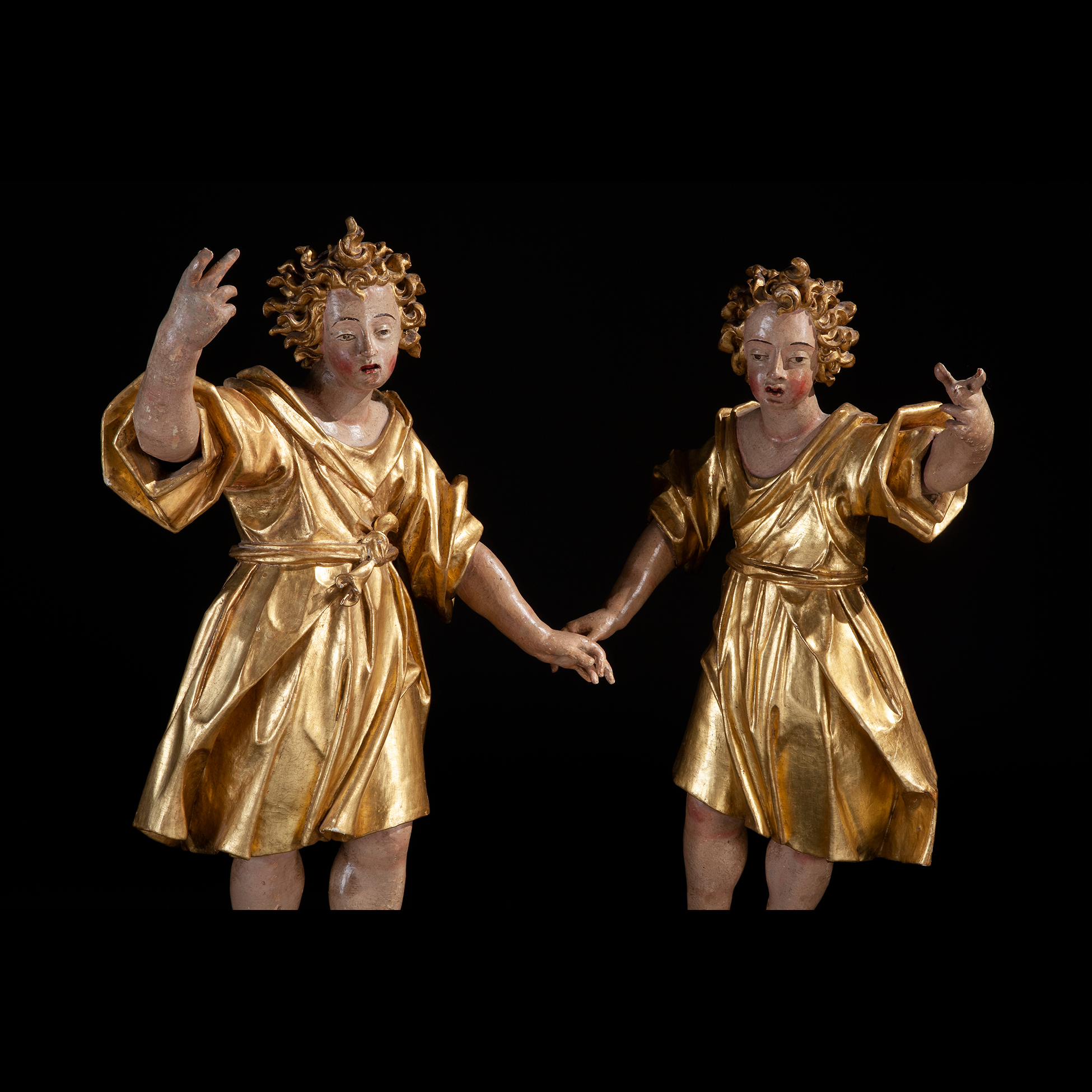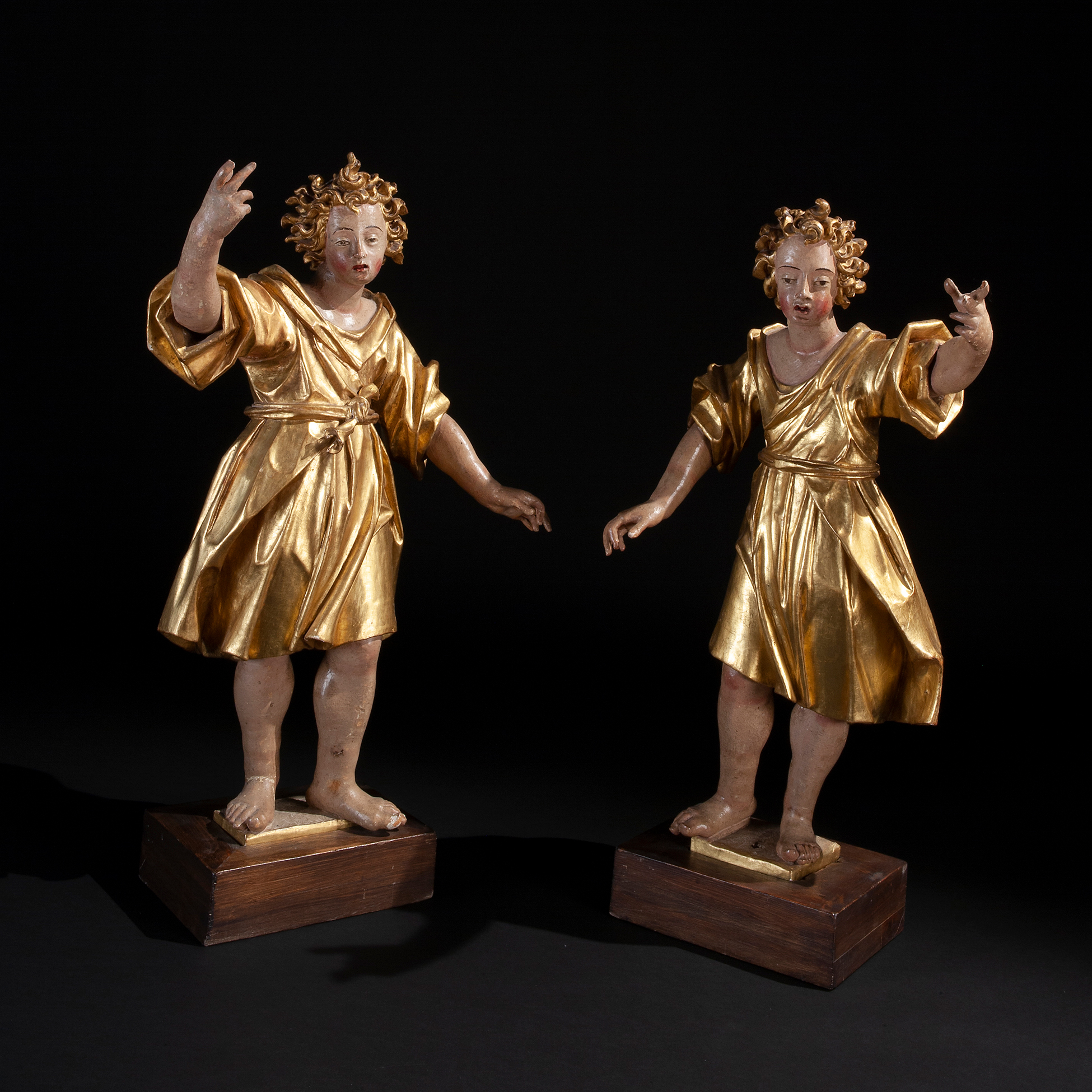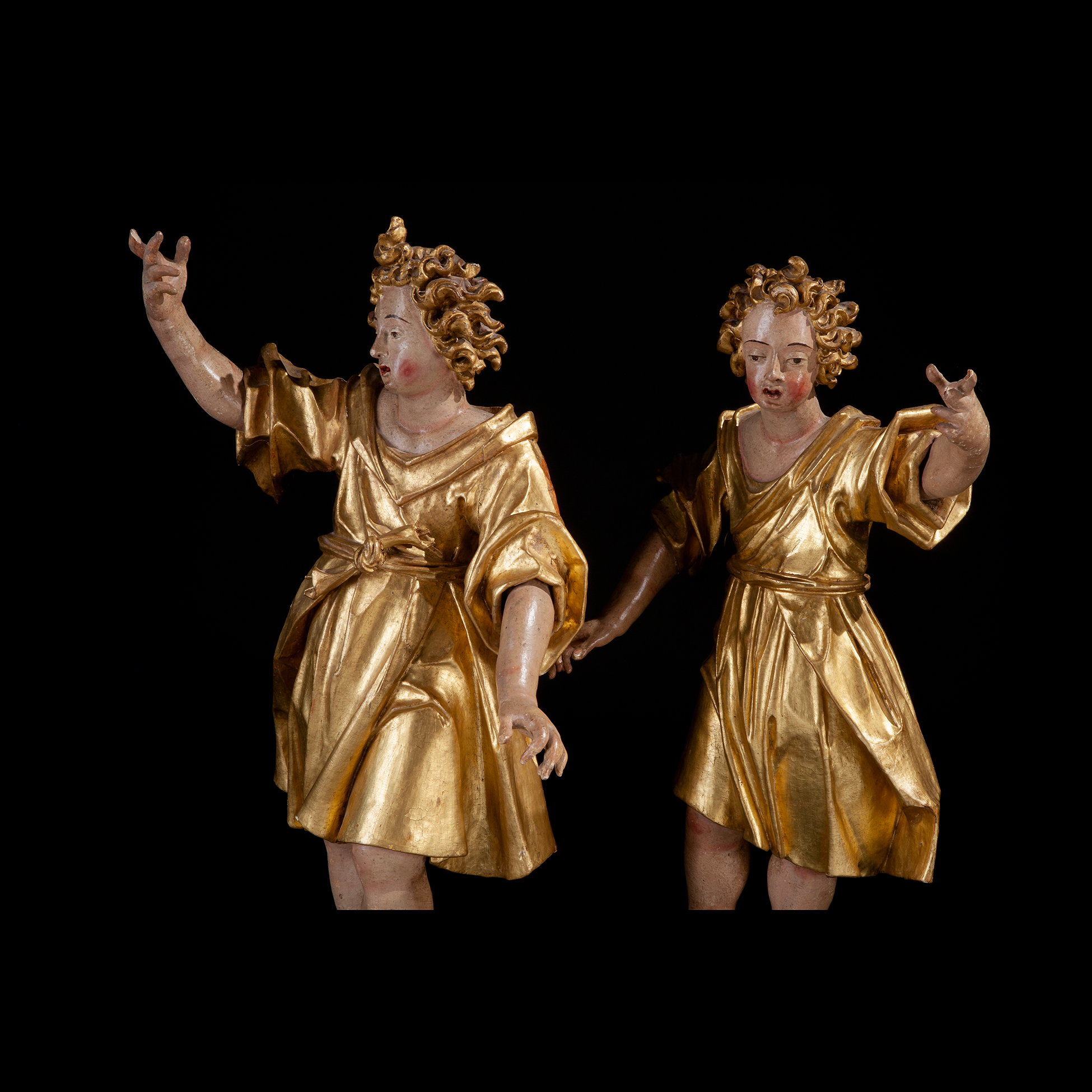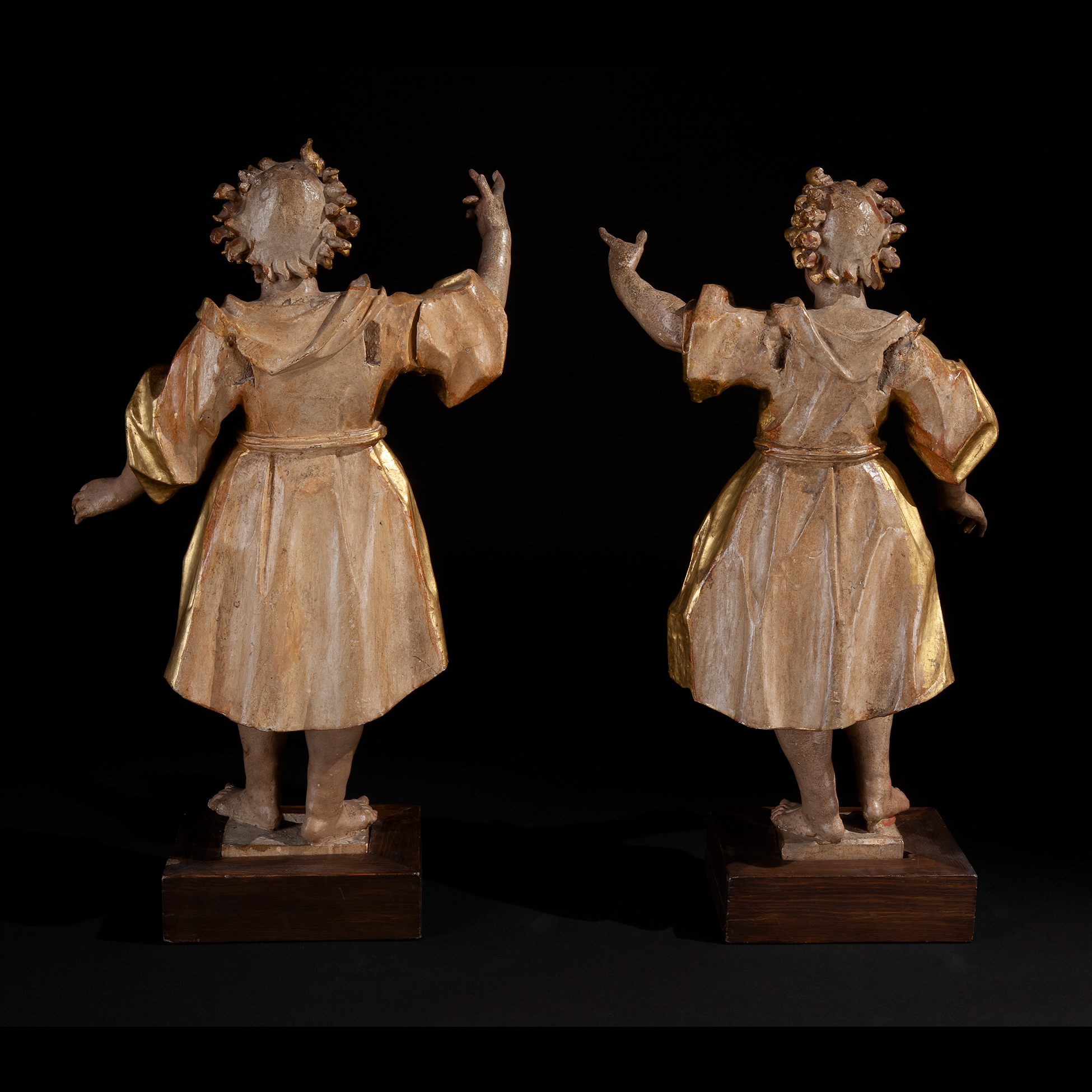 Coppia di grandi angeli d'altare intagliati, Veneto XVII secolo
