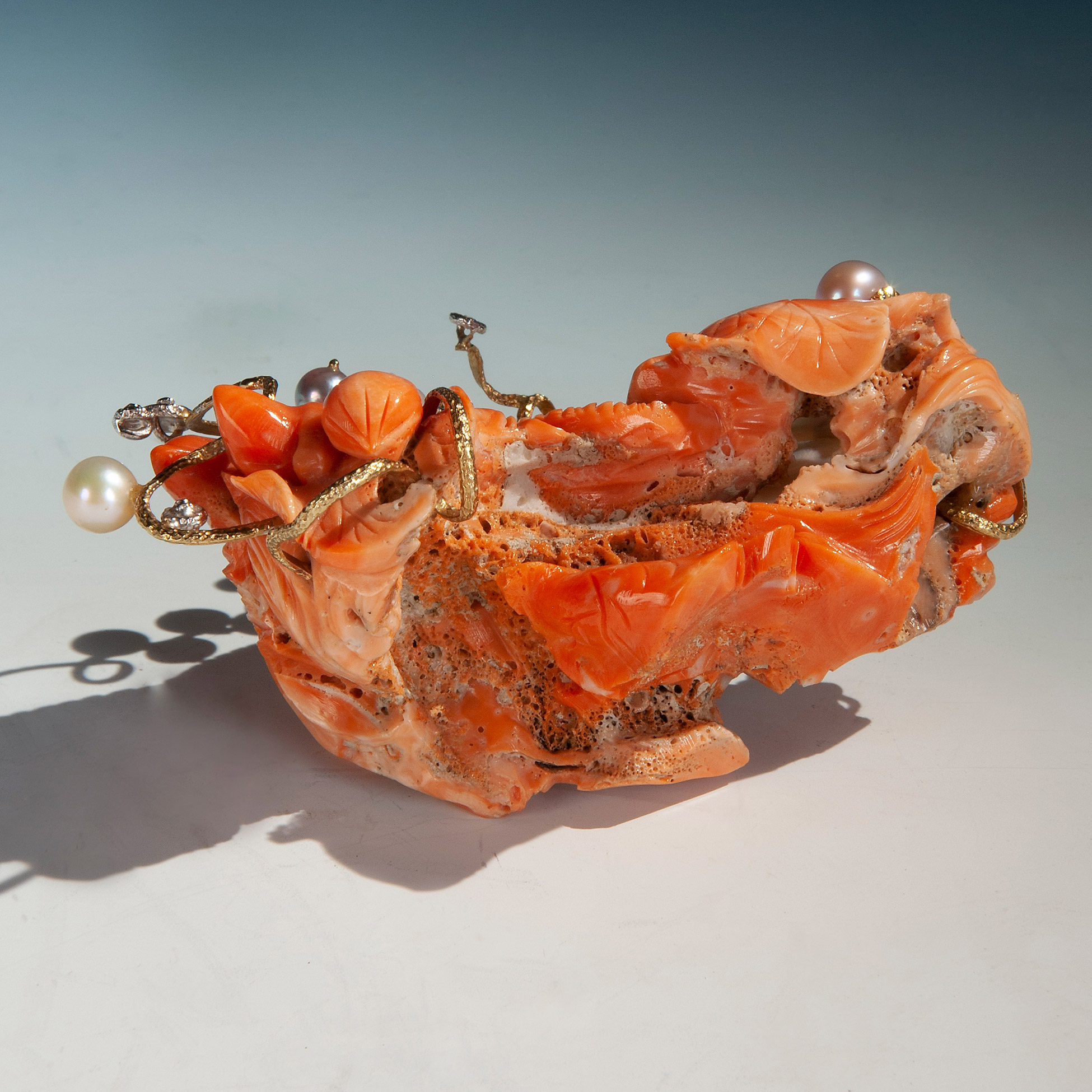Scultura in corallo giapponese e perle, Milano ultimo quarto del XX secolo