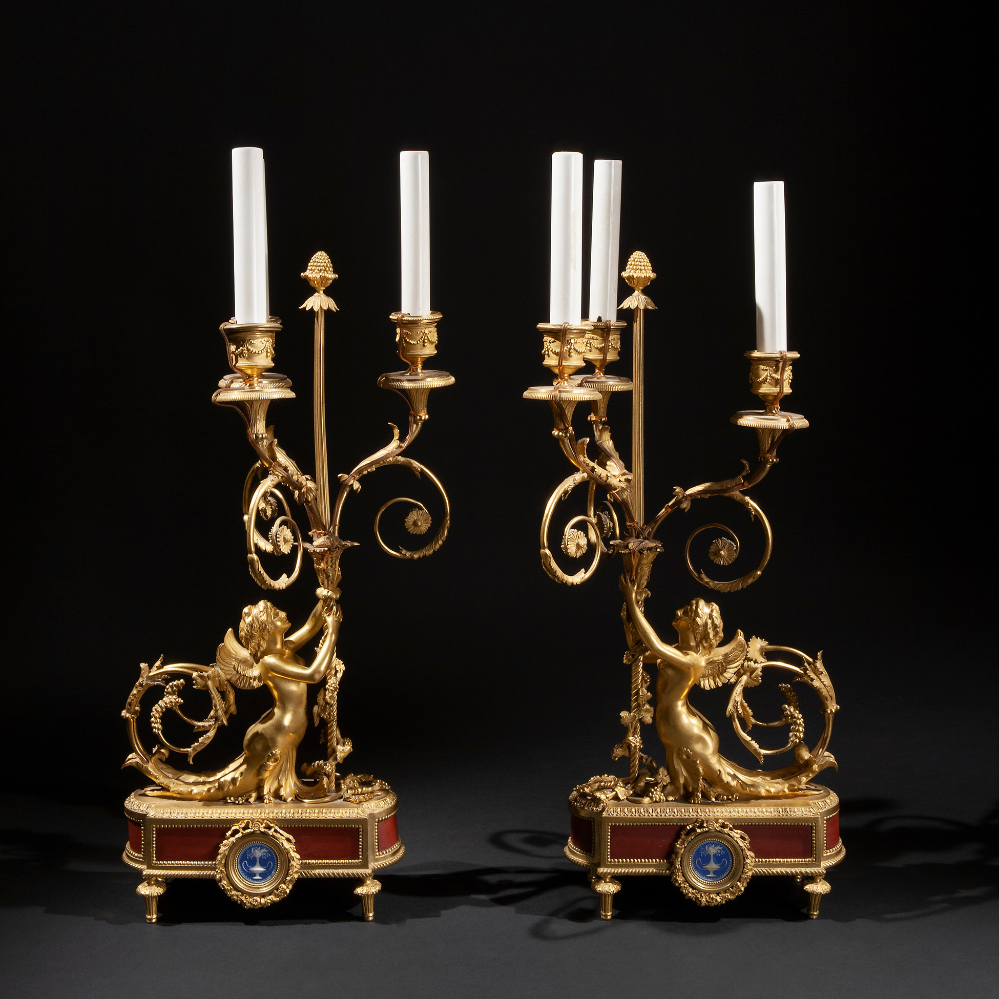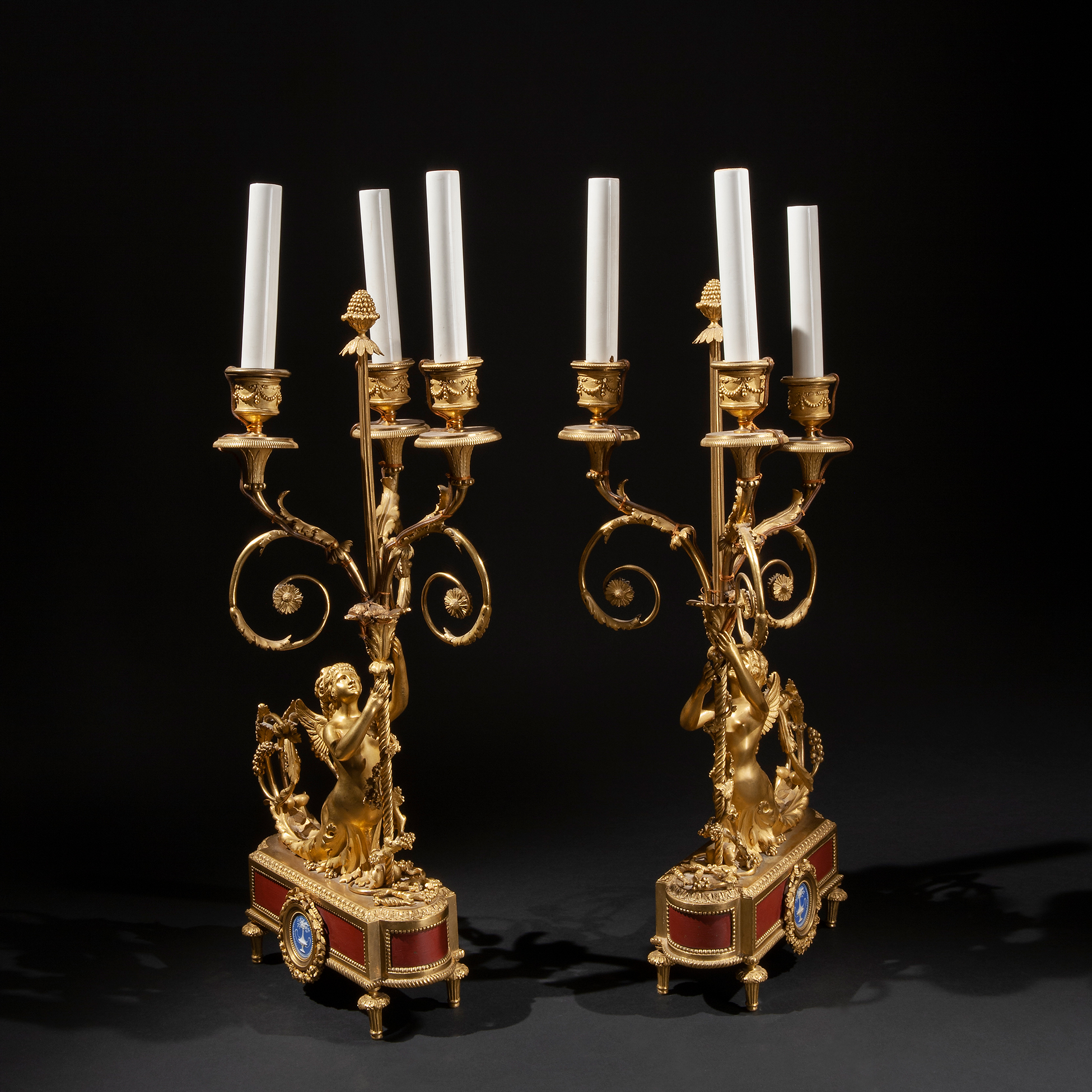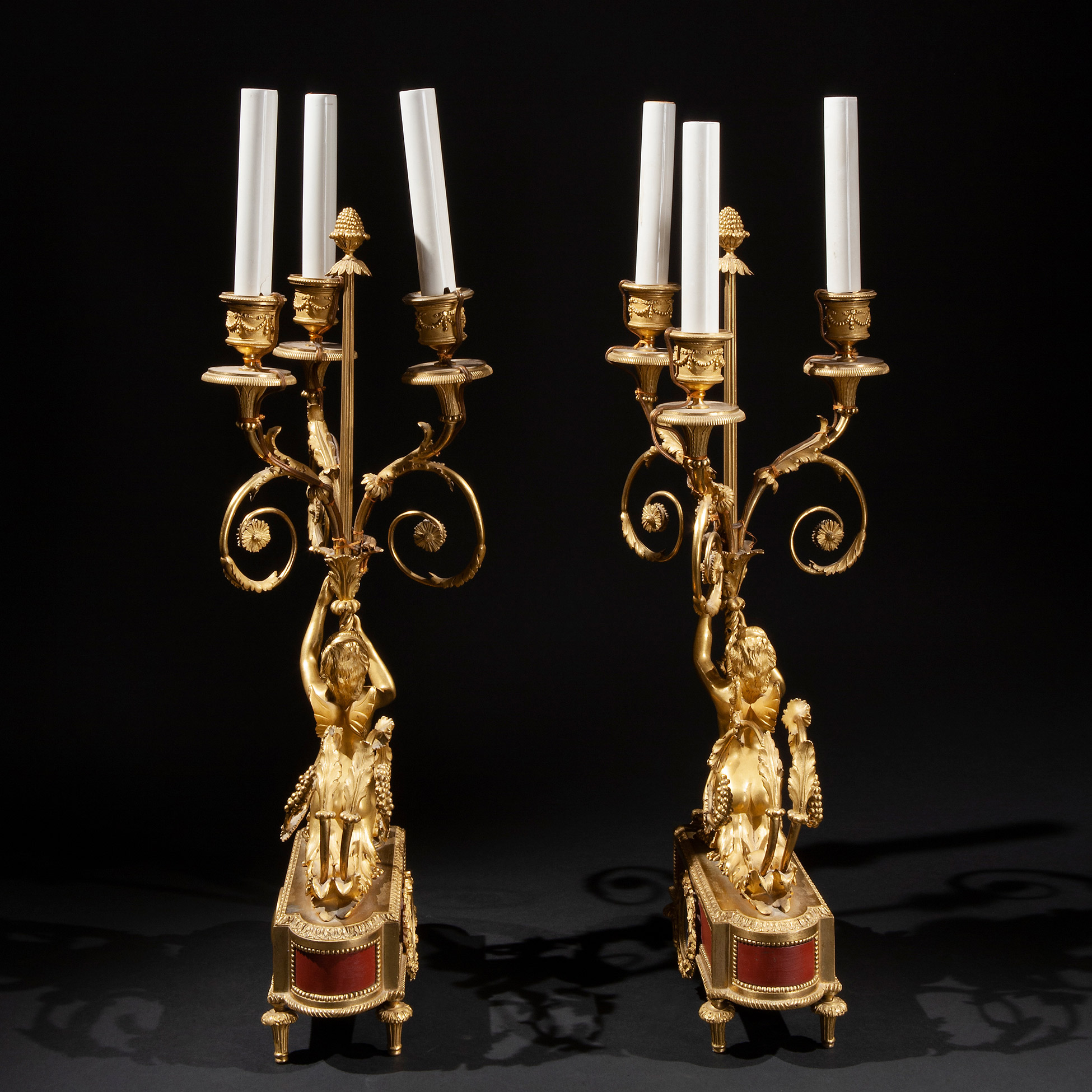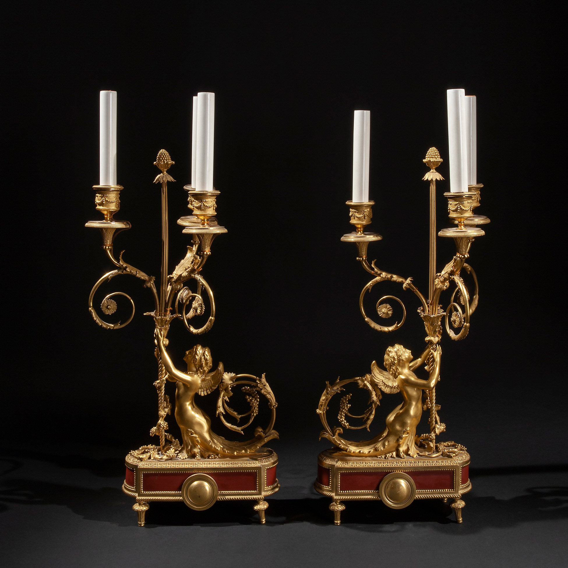 Coppia di candelabri in bronzo dorato, Inghilterra prima metà del XIX secolo