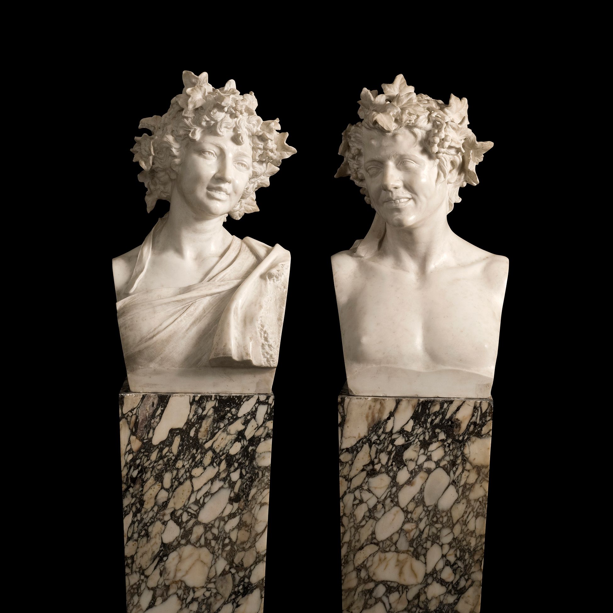 Coppia di busti raffiguranti Bacco, fine XIX secolo