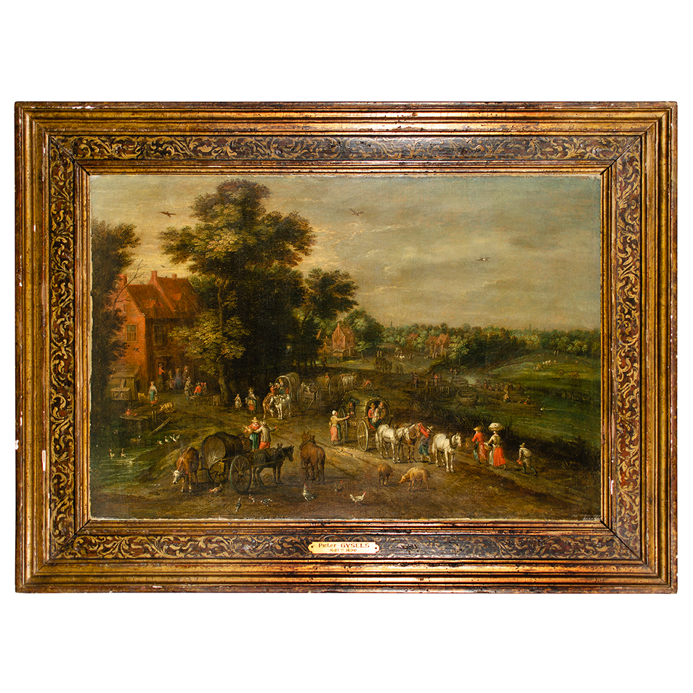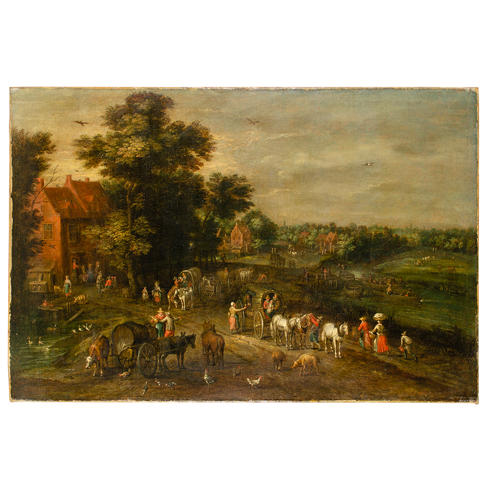 PAESAGGIO CON VIANDANTI E PORTICCIOLO