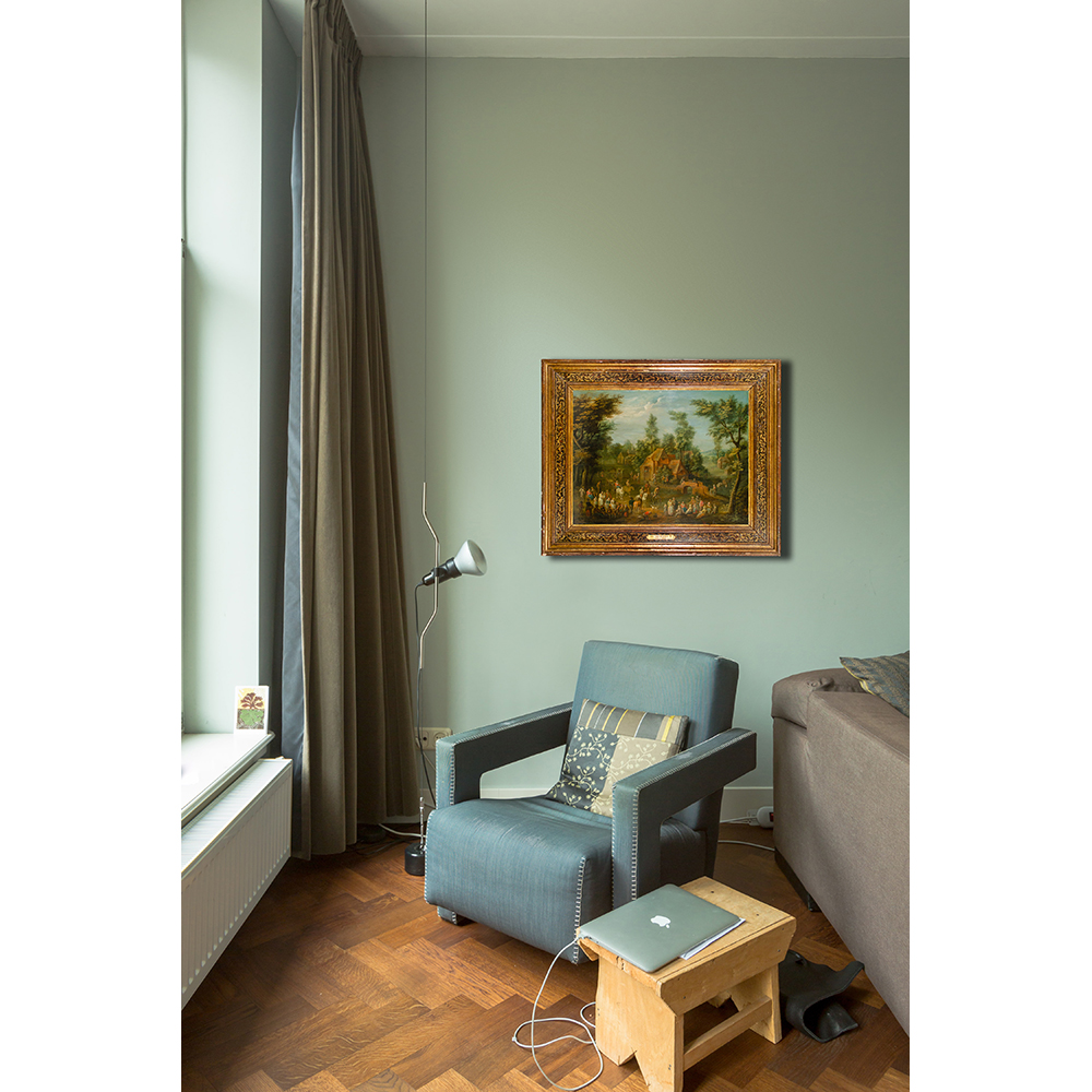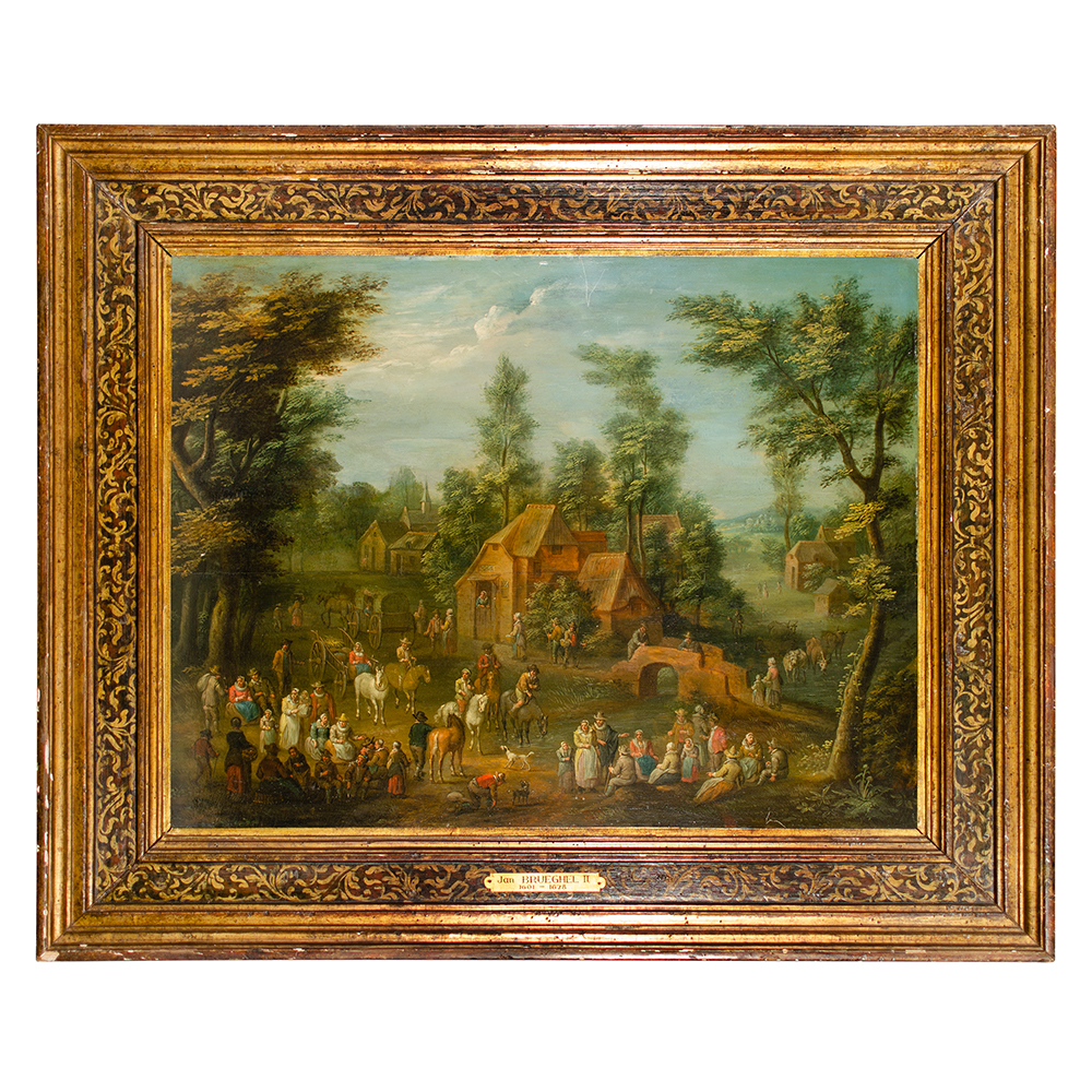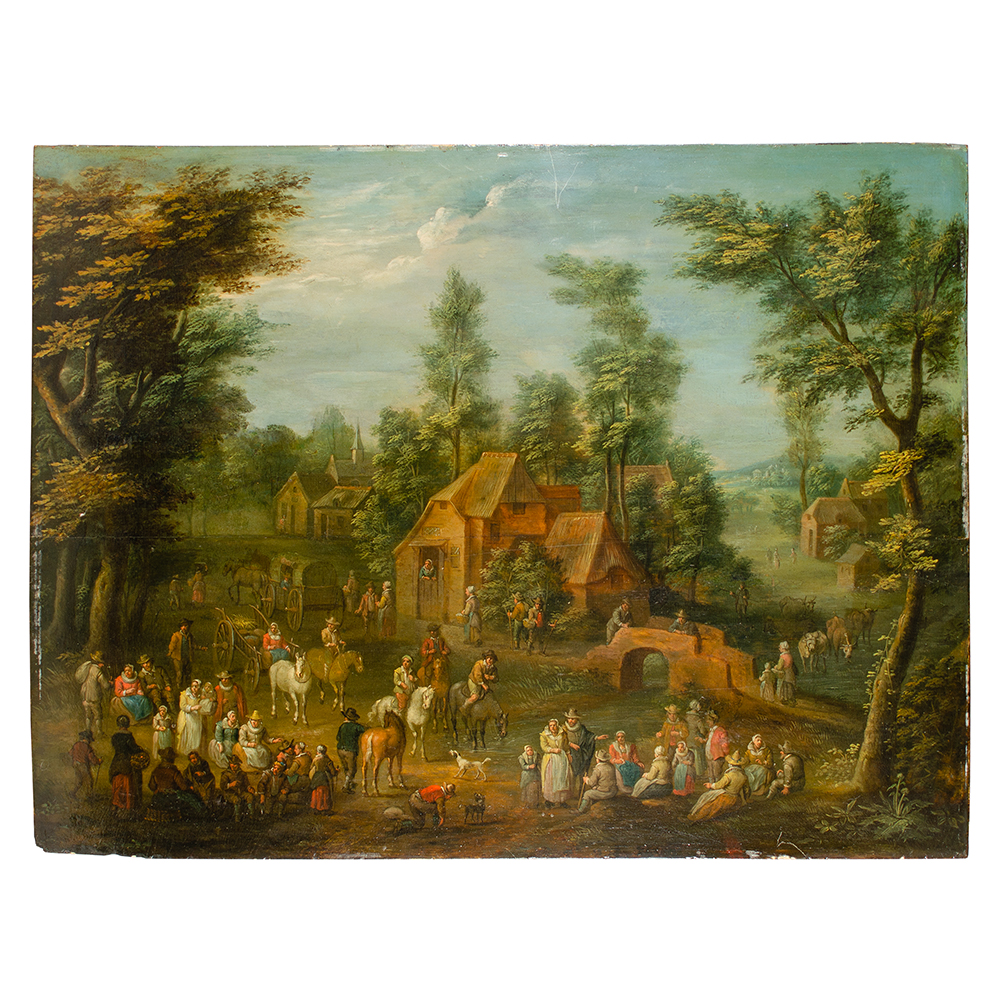 VEDUTA DI PAESE CON CONTADINI E VIANDANTI