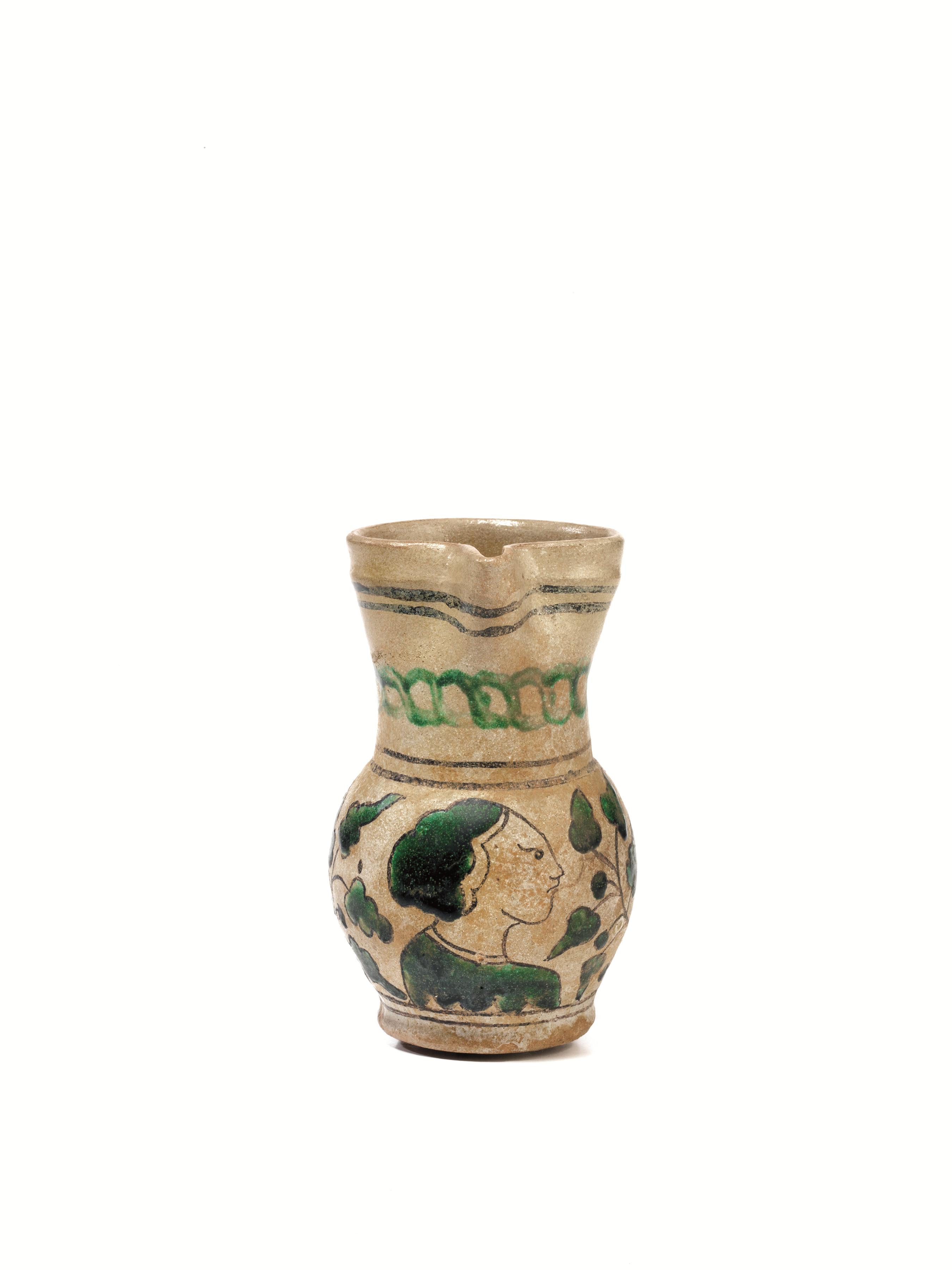 Piccolo boccale trilobato, Alto Lazio, fine sec. XIV, in maiolica decorata