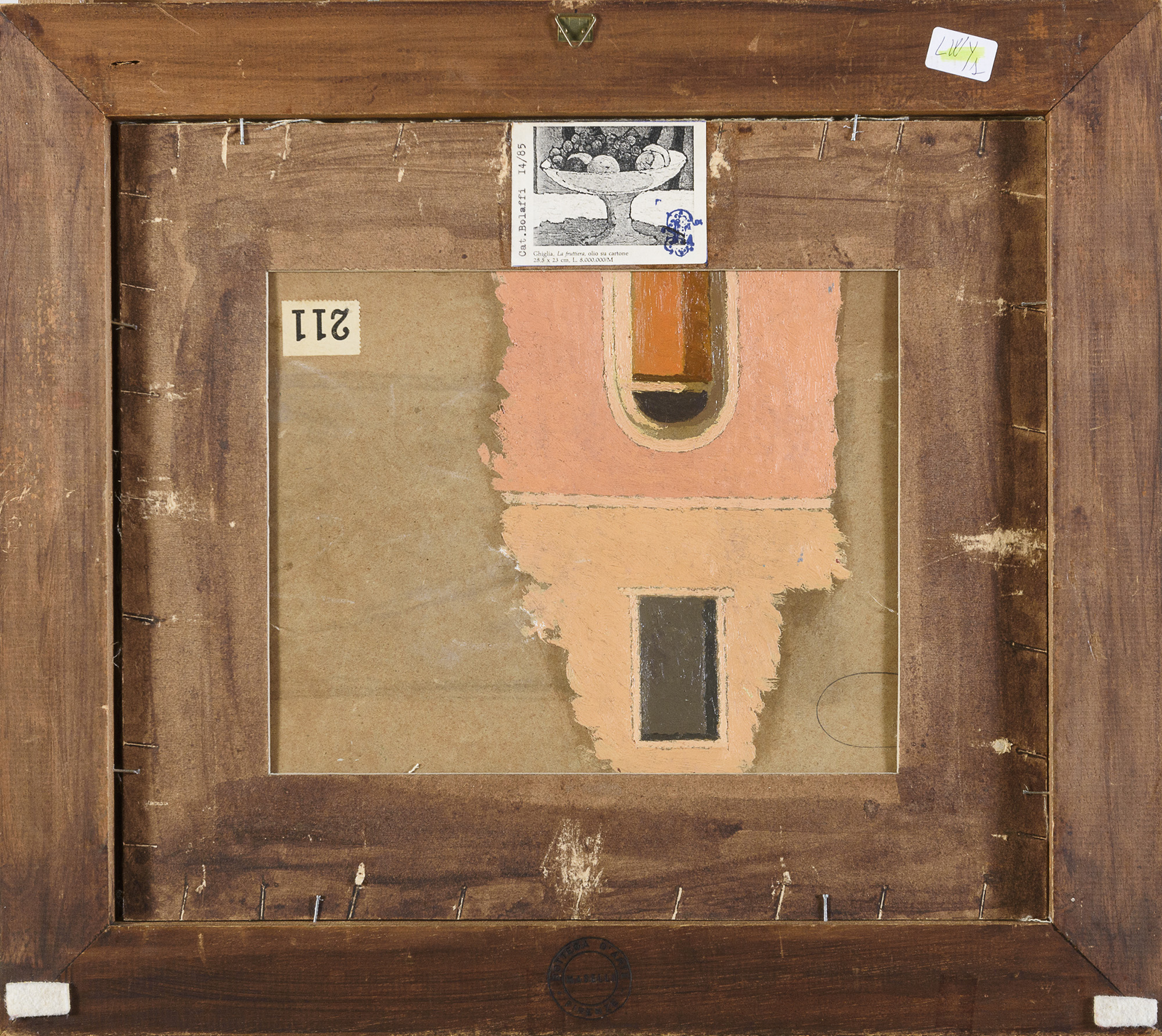 Dipinto raffigurante facciata di edificio, al retro