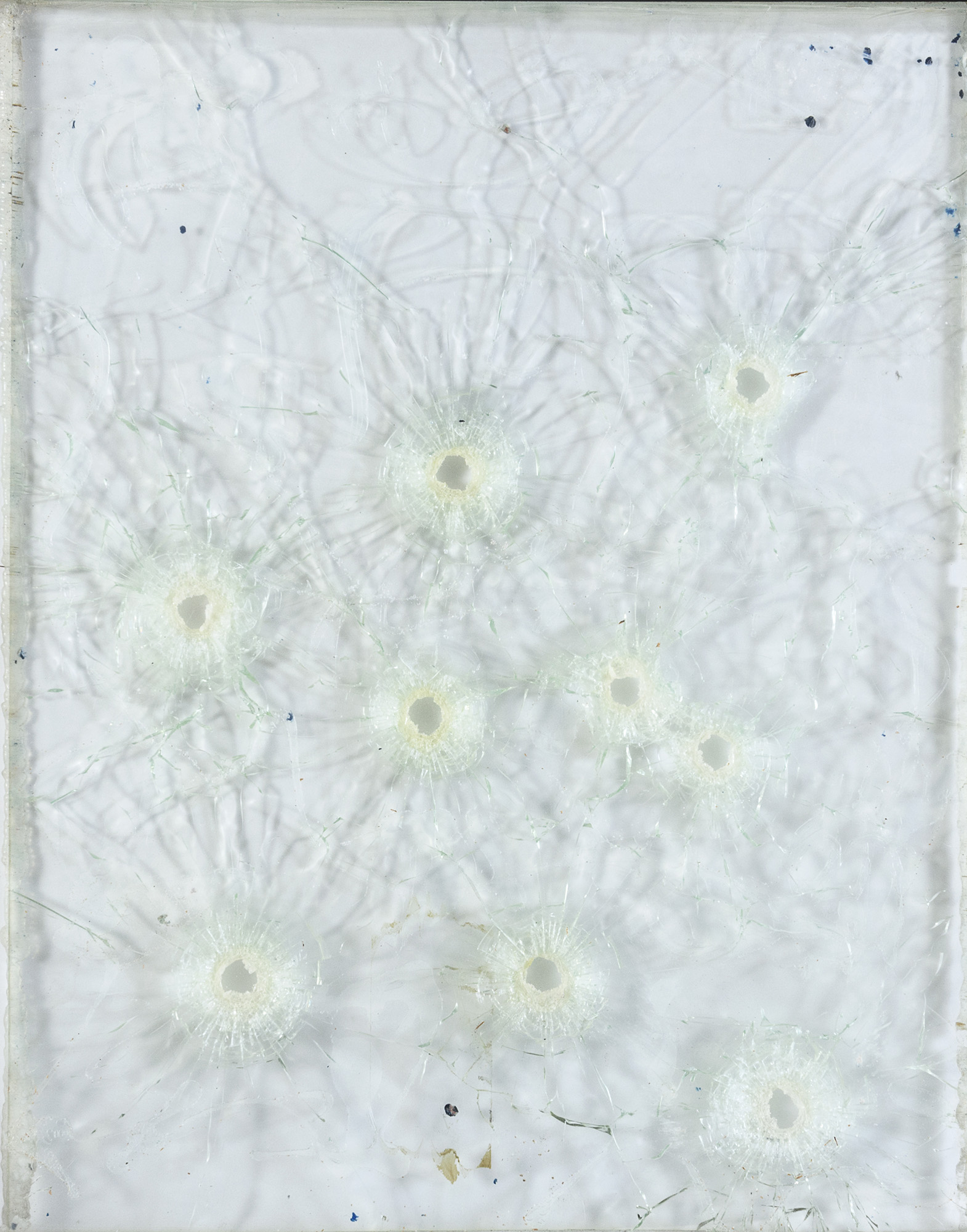 Fori da proiettile su vetro, cm. 48 x 48