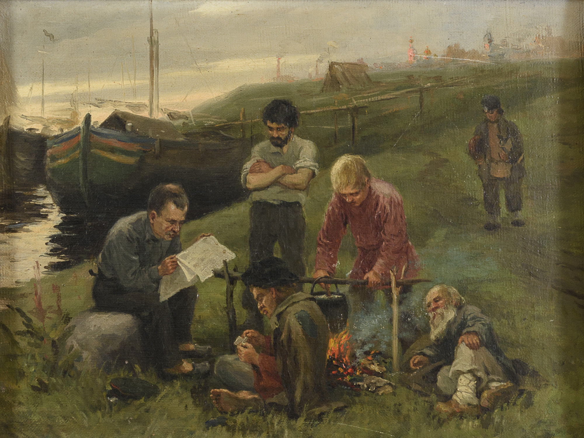 DIPINTO PRANZO AL FIUME DI SCUOLA RUSSA