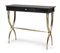 con piano in marmo nero ad un cassetto con pomello in ottone. Gambe in ottone a doppia cornucopia intrecciata con finali cesellati.