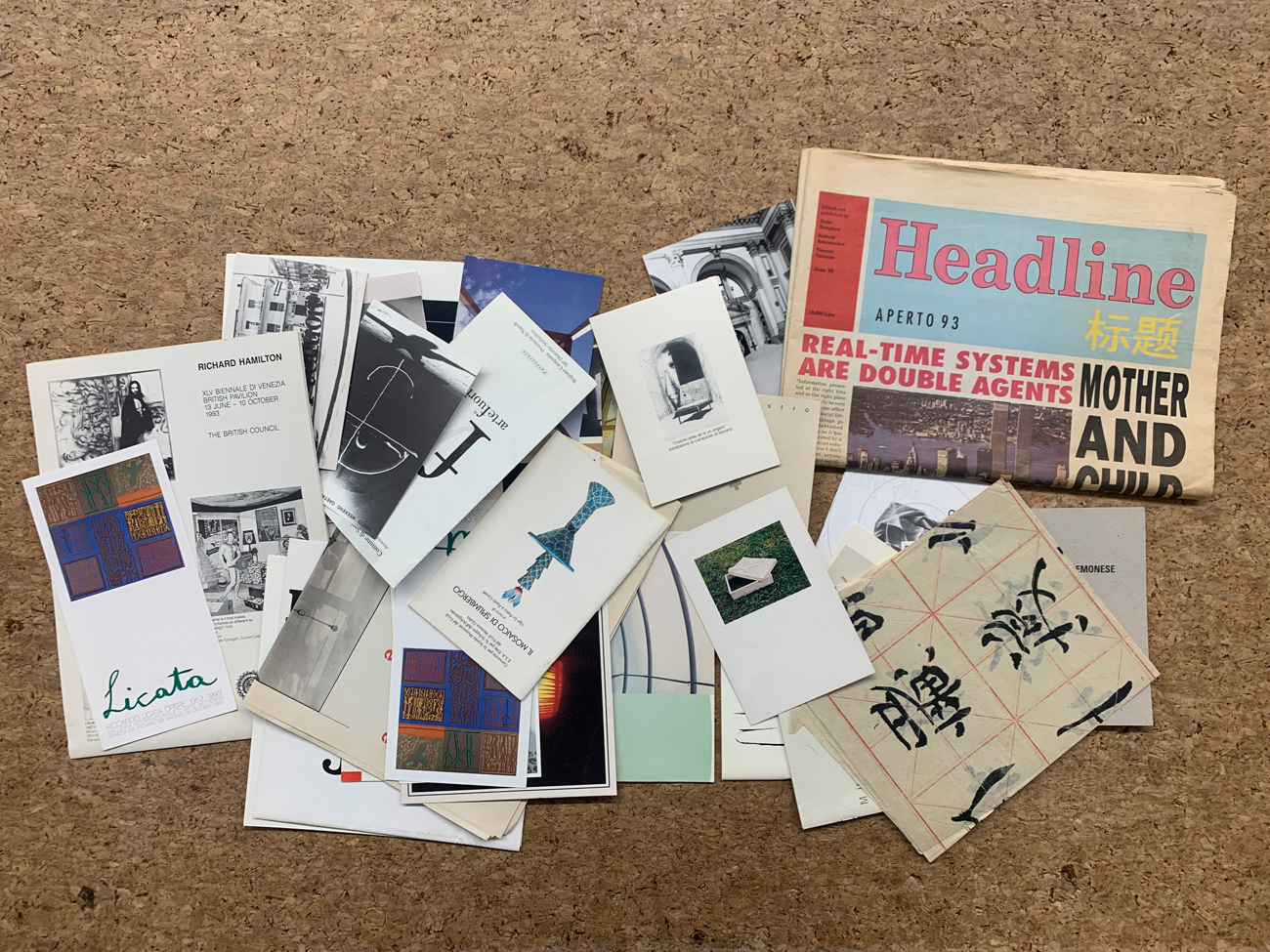 34 tra cartoline, fotografie, inviti e piccoli cataloghi, poster, giornali inerenti mostre artistiche e installazioni