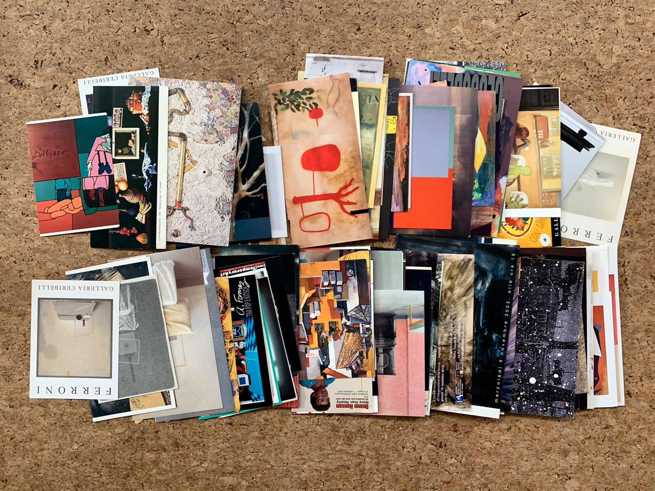 Lotto unico di circa 120 tra cartoline ed inviti relativi ad esposizioni personali e collettive di artisti quali Adami, Baj, Casentini, Ceccobelli, Chia, Ferroni, Fioroni, Galliani, Guttuso, Kandinsky, Morlotti, Paladino, papetti, Pistoletto e molti altri
