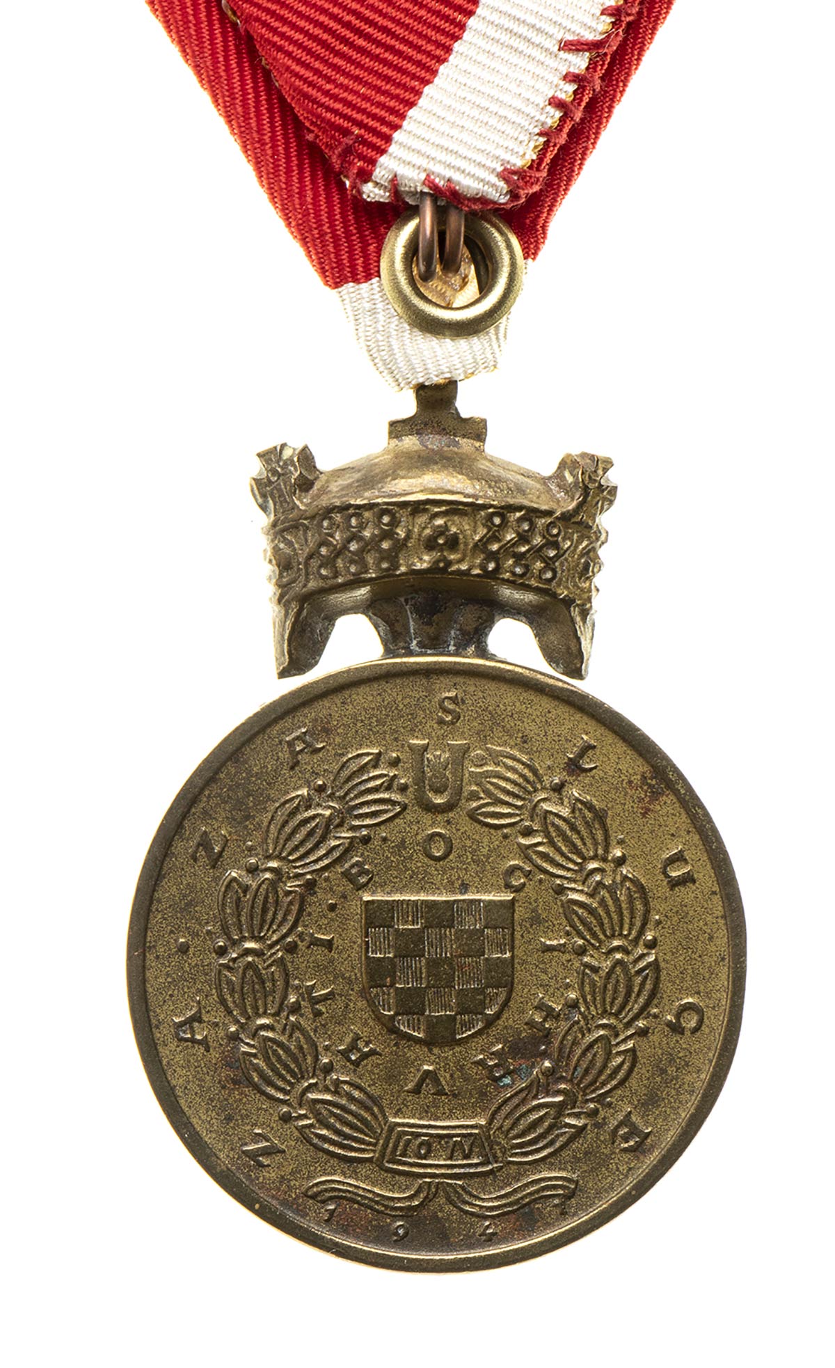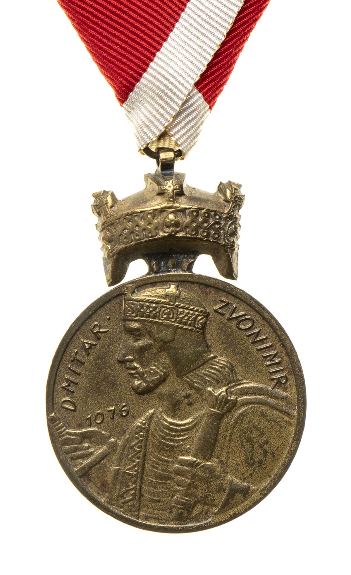 MEDAGLIA DELL’ORDINE DELLA CORONA DI RE SVONIMIRO, IN BRONZO CON NASTRO ORIGINALE