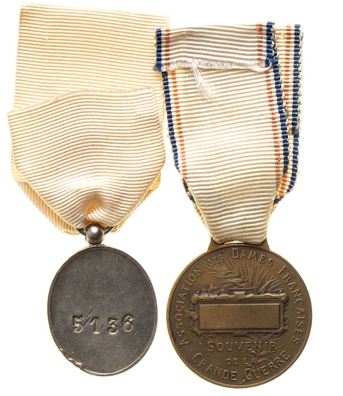 DUE MEDAGLIE DELLA CRF PERIODO GRANDE GUERRA, UNA DELLE DAMES DE FRANCE E UNA DELL’ASSOCIAZIONE DES FEMMES DE FRANCE, NASTRI ORIGINALI