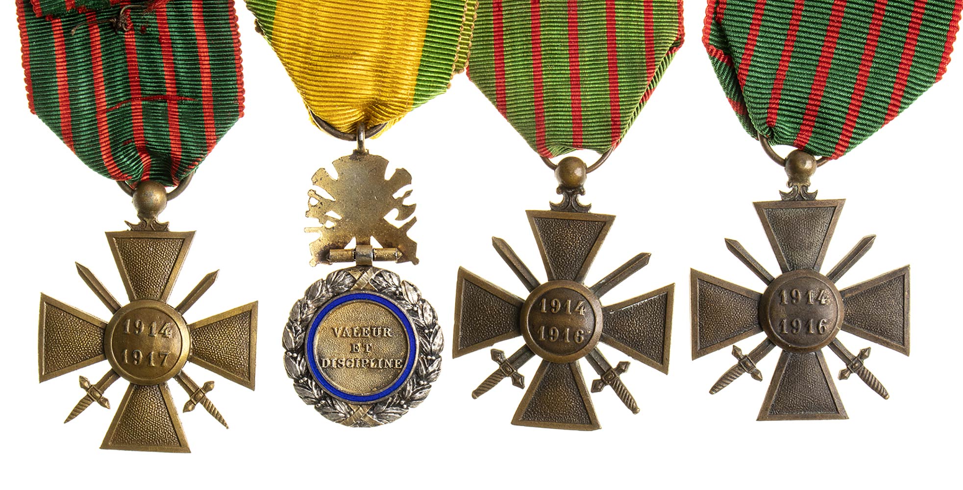 LOTTO DI TRE CROCI DI GUERRA ED UNA MEDAILLE MILITAIRE