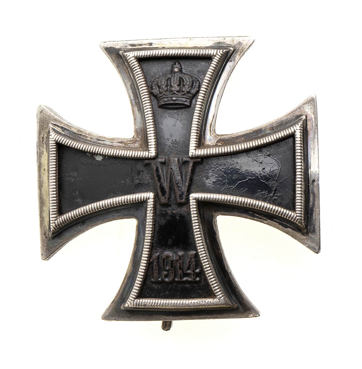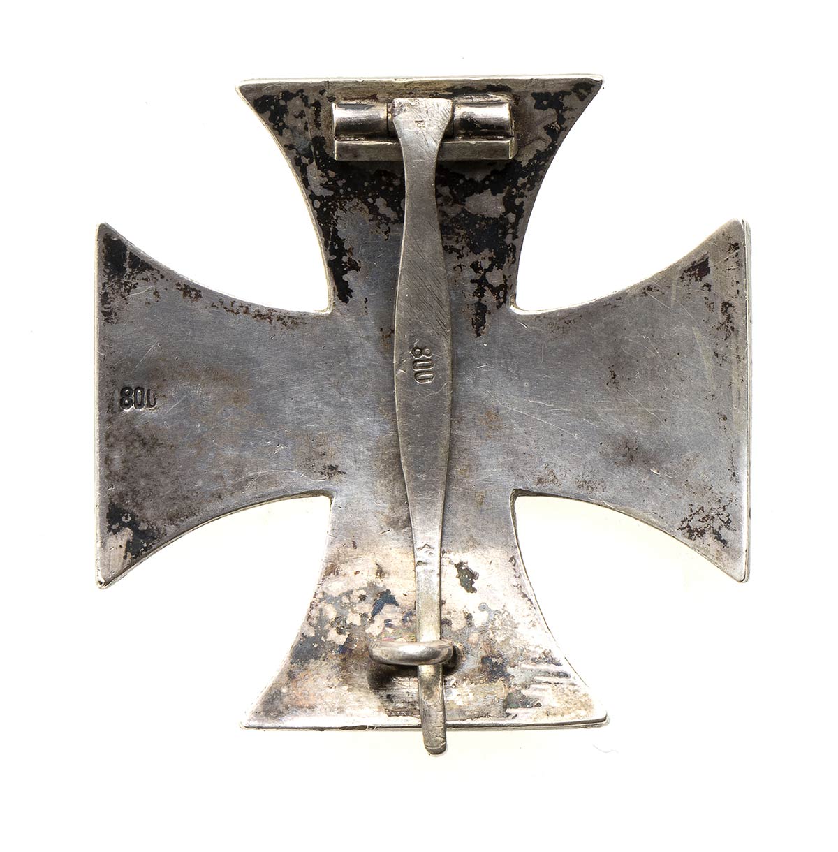 BELLA CROCE DI FERRO DI TIPO CONVESSO, AL VERSO PUNZONE DELL'ARGENTO SULLO SPILLONE, BELLA PATINA