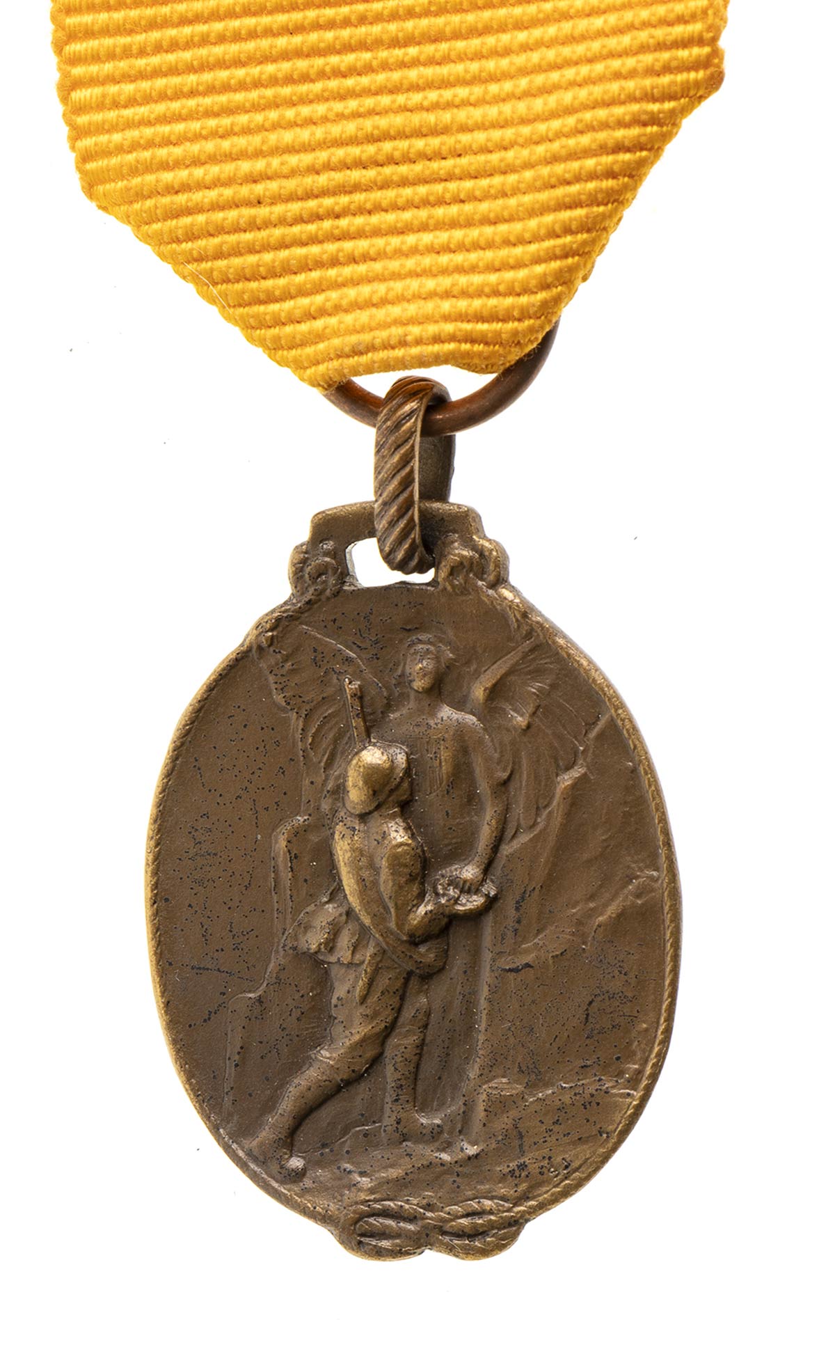 MEDAGLIA OVALE CON LE CAMPAGNE DI GUERRA DEL REGGIMENTO ELENCATE AL VERSO, NASTRO COERENTE