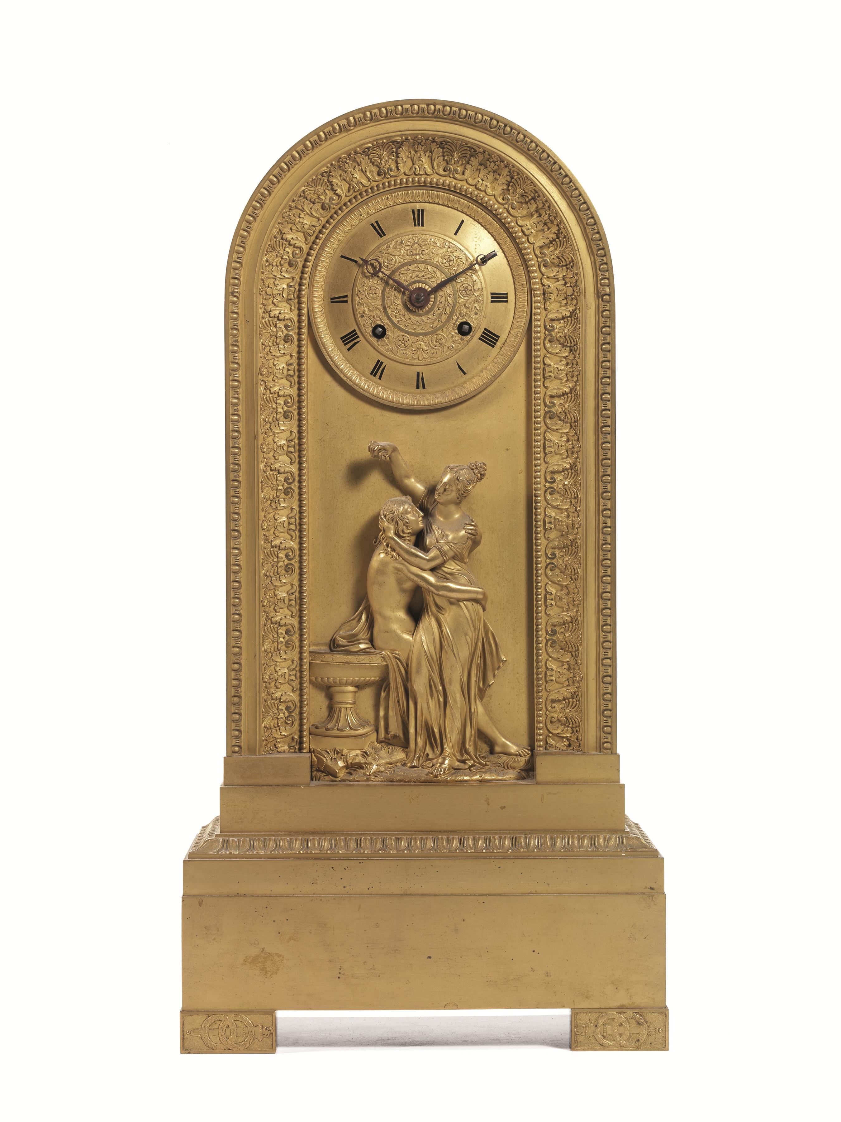 Lotto 256 | Orologio, sec. XIX, in bronzo dorato, base rettangolare, cassa decorata da...