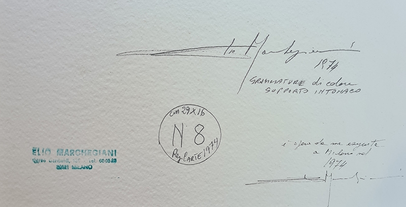 supporto, intonaco cm 16x29 firma e timbro al verso