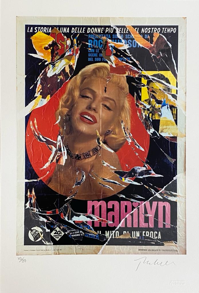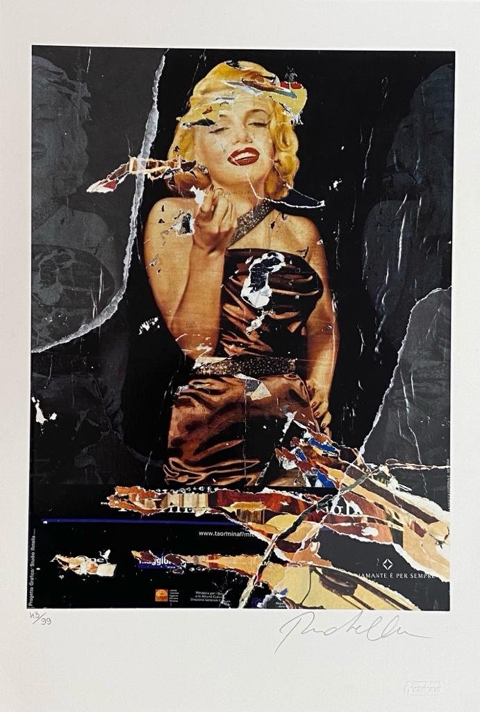 n. 2 multipli, decollages cm 50x35, firma in basso a destra es. 43/99, contenenti nella cartella “Marilyn il Mito”, Ethos Bologna, testi di Alda Merini opere grafiche di Mimmo Rotella