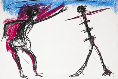 Enrico Baj Matite colorate su cartoncino 35x50 Senza titolo 1955 Autentica della moglie