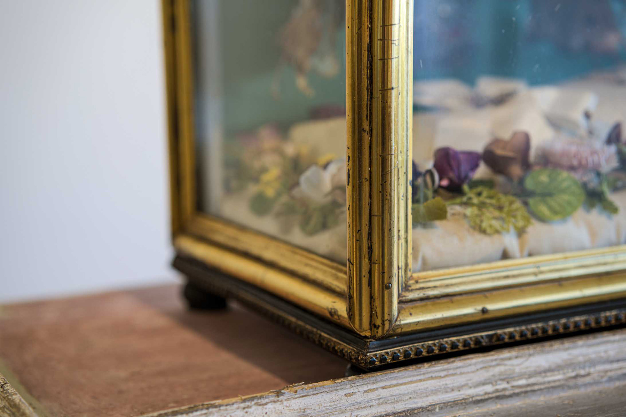 scultura in cera d'api entro teca di vetro